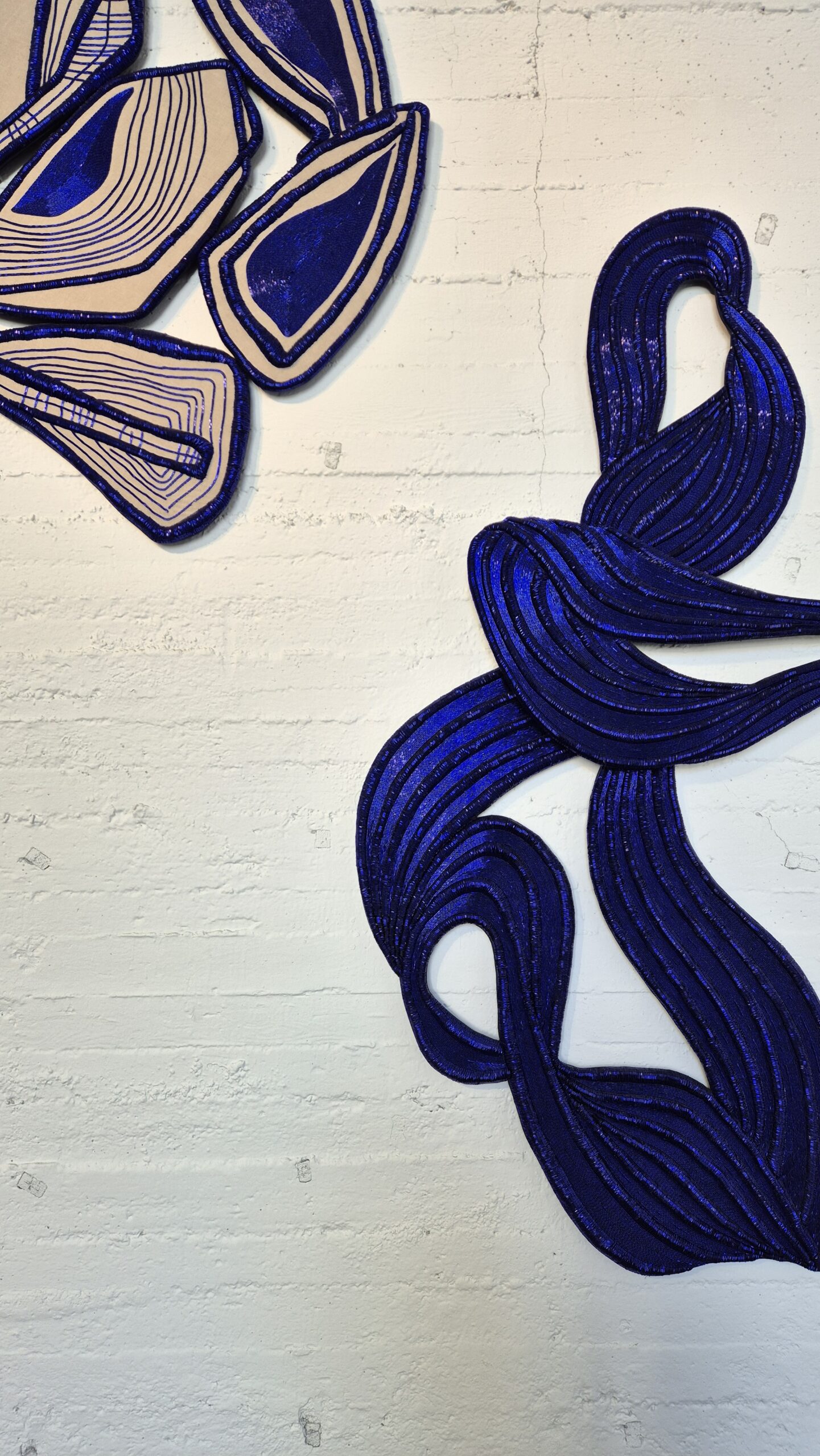 Qualche altro nome? I progetti minimalisti e funzionali in legno di Arno Declercq, gli arazzi astratti di KRJST Studio, le luci a sospensione LED in bronzo fuso di Vladimir Slalov, Adeline Halot, i nuovissimi tavolini Resourcer di Thomas Serruys, caratterizzati da pianeti in acciaio grezzo con gambe forgiate, e una selezione di opere grezze e raffinate della Maison Jonckers, che fondono minerali e metalli preziosi con resine colorate. Ma anche la libreria scultura CO SERIES 01 dei romani MILLIM STUDIO, estensione del lavoro di ricerca sulle forme metalliche già avviato con la serie CUTOUT; il tavolino LUNAR di Wanderart, i mobili lapidei di Gerardo Kuijpers, le tre serie inedite realizzate con blocchi di pietra e legno dallo Studio Khachatryan, i mobili fatti a mano da Middernacht & Alexander con acciaio riciclato, pigmenti, resina e vernice, e le squisite sculture murali in perline di vetro monocromatiche di Marijke De Cock, realizzate nei toni del blu reale, del nero e dell’oro. E ancora Crina Arghirescu Rogard in collaborazione con Liz Hopkins, Claudia Baez ed Ekaterini Konidari per il progetto Carte Blanche, i tappeti in pelle di pecora tessuti a mano da Carine Boxy, i pezzi di illuminazione in bronzo scolpiti a mano da William Guillon e le ceramiche scultoree e i vasi funzionali di Laura Pasquino, che fondono senza soluzione di continuità linee morbide e finiture robuste, esplorando l’interazione tra arte e natura.