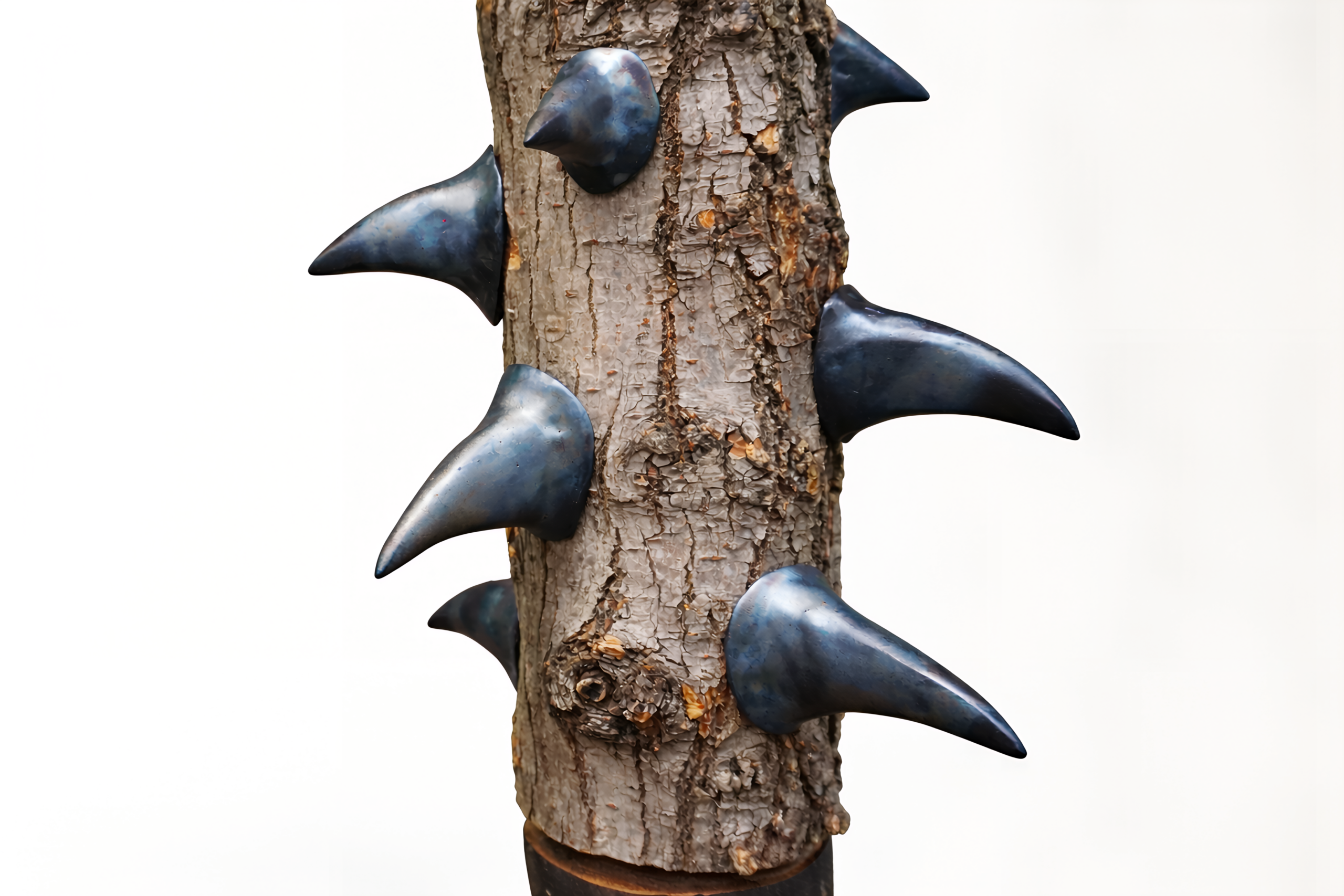 Anna Marzuttini, collaborando con la Cooperativa Contea, introduce invece una dimensione organica. Tronchi e rami provenienti dalla manutenzione del verde urbano vengono riassemblati in una struttura installativa attraversabile, un paesaggio che oscilla tra naturale e artificiale. Gli interventi pittorici e scultorei non impongono una forma, ma seguono le tensioni intrinseche del legno, lasciando emergere una riflessione sul rapporto tra azione umana ed ecosistema. La materia qui non viene trasformata radicalmente, ma accompagnata in una nuova possibilità di esistenza. Infine Kristian Sturi, insieme a Infostar Group Srl, lavora con materiali elettronici dismessi, presentando un’opera che mette in cortocircuito tecnologia e immaginario simbolico. La sua installazione, strutturata come una bifora contemporanea, ospita elementi tecnici, come dissipatori e componenti circuitali, trasformati in icone. Le scariche generate da bobine di Tesla attraversano lo spazio, creando connessioni luminose tra una figura umana e una animale. E le opere, al termine della mostra, torneranno alle aziende che hanno fornito i materiali. Un gesto che chiude un percorso ideale e inedito, riportando la materia, ormai trasformata, nei luoghi della produzione, ma con un valore completamente diverso.