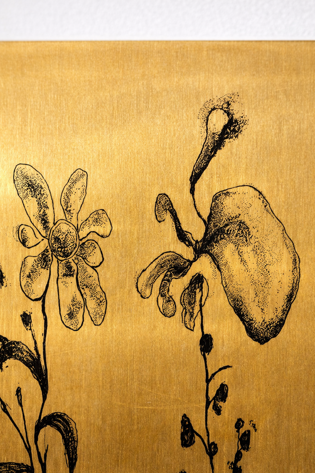 Per l’occasione, Giulia Maria Belli lavora con gli scarti tessili messi a disposizione da Braida Srl SB, storica azienda del Distretto della Sedia. La sua installazione si sviluppa come una grande superficie cucita, fatta di frammenti che si aggregano senza perdere la propria individualità. Il tessuto, segnato da interventi pittorici a cera, si trasforma in una sorta di archivio emotivo: immagini affiorano e si dissolvono, mentre sagome umane sospese instaurano una relazione silenziosa. Qui lo scarto non è residuo, ma traccia di vite e gesti, memoria condivisa che si fa racconto. Con Nicola Facchini, in dialogo con Postir Srl, la riflessione si sposta sulla dimensione del tempo e della permanenza. Le lastre di ottone recuperate diventano superfici sensibili su cui si depositano immagini serigrafiche: interni domestici, nature morte, frammenti di quotidianità. L’ossidazione del metallo e le imperfezioni del supporto interferiscono con la leggibilità, rendendo ogni immagine instabile, quasi trattenuta. È una pittura che si confronta con la durata, dove la materia conserva una doppia memoria.