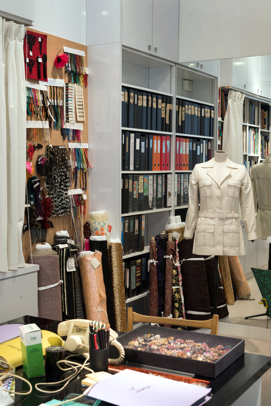 E così il palazzo in Avenue Marceau, sede storica dell’atelier di Yves Saint Laurent, non è stato semplicemente trasformato in freddo dispositivo museale con le creazioni dello stilista disposte una accanto all’altra, ma Bergè ha voluto fortemente che fosse conservato lo spirito dello studio di Yves Saint Laurent, il cuore dell’atelier, luogo in cui lo stilista trascorreva le sue giornate lavorando alle sue collezioni, tra schizzi, rotoli di tessuti e cassetti pieni di perline e pizzi. Sono stati conservati gli arredi originali che fanno da cornice ad una collezione mastodontica che non ha precedenti nel mondo dell’haute couture: cinquemila abiti di alta moda, quindicimila accessori, migliaia di schizzi, schede, fotografie ed oggetti archiviate dal 1961 al 2002. E si tratta in realtà di una duplice apertura perché quasi in contemporanea, il prossimo 19 ottobre, sarà inaugurato un museo gemello in Marocco: il Musée Yves Saint Laurent Marrakesh. Tutte le immagini in anteprima del museo parigino.