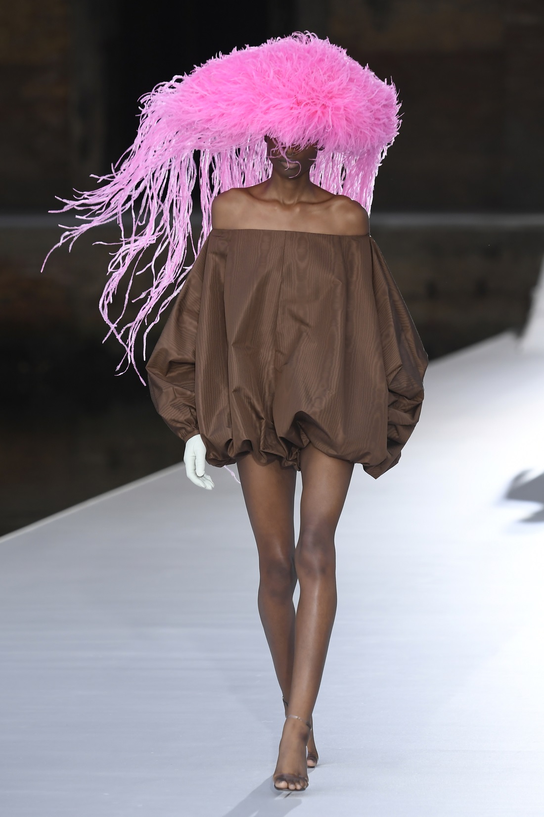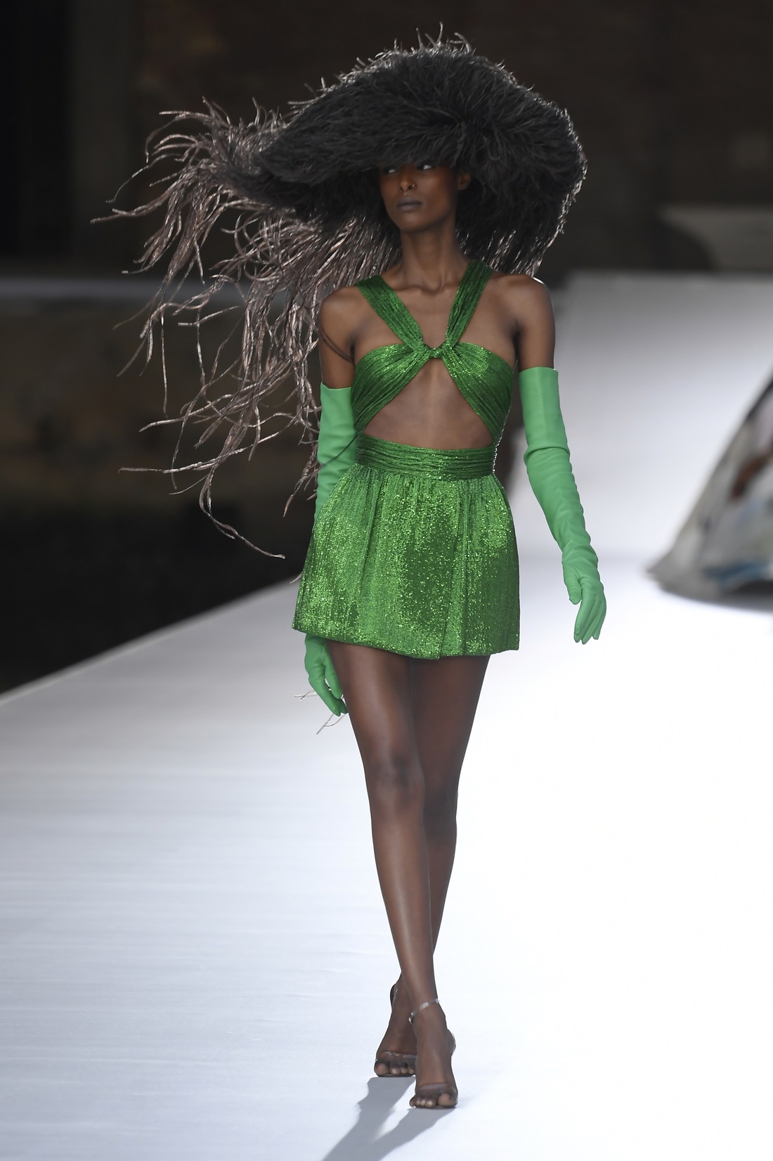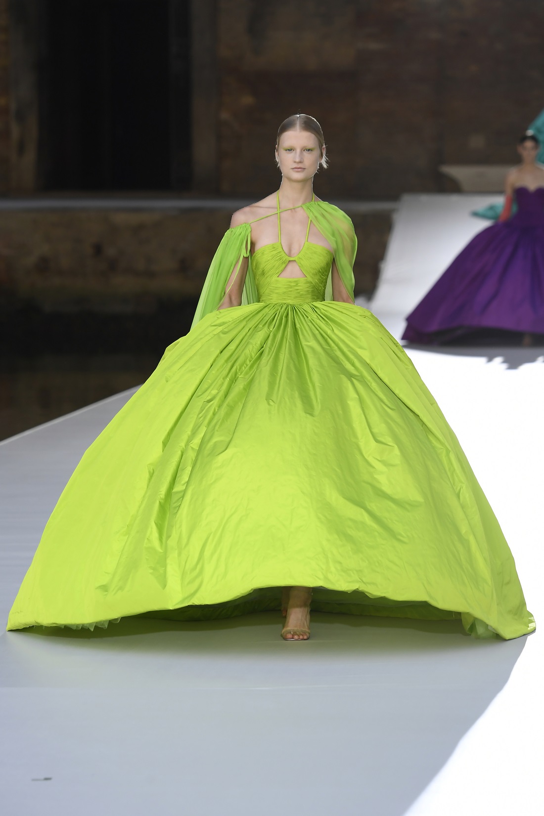 La collezione Haute Couture Autunno Inverno ’21-’22 ha sfilato tra allestimenti e ambienti concepiti dagli artisti, i quali hanno però mantenuto intatto l’assetto della location storica. Si tratta delle famose tettoie dell’Arsenale che molti conosco perché parte del percorso delle mostre della Biennale e realizzate nel Cinquecento da Jacopo Sansovino. La maison ha insomma escluso qualsiasi intervento architettonico che potesse alterare la cornice naturale dello spazio: solo interventi ‘di servizio’. Un approccio molto diverso dall’altra sfilata che si è svolta in questi giorni a Venezia con Saint Laurent che ha realizzato dal nulla una grande lanterna percorribile, un gigantesco spazio pubblico nuovo e specchiante sull’Isola della Certosa.