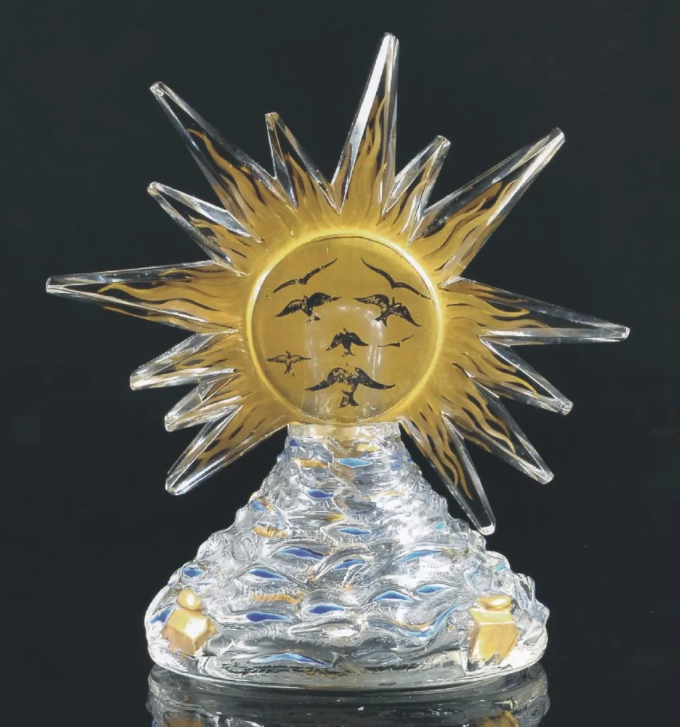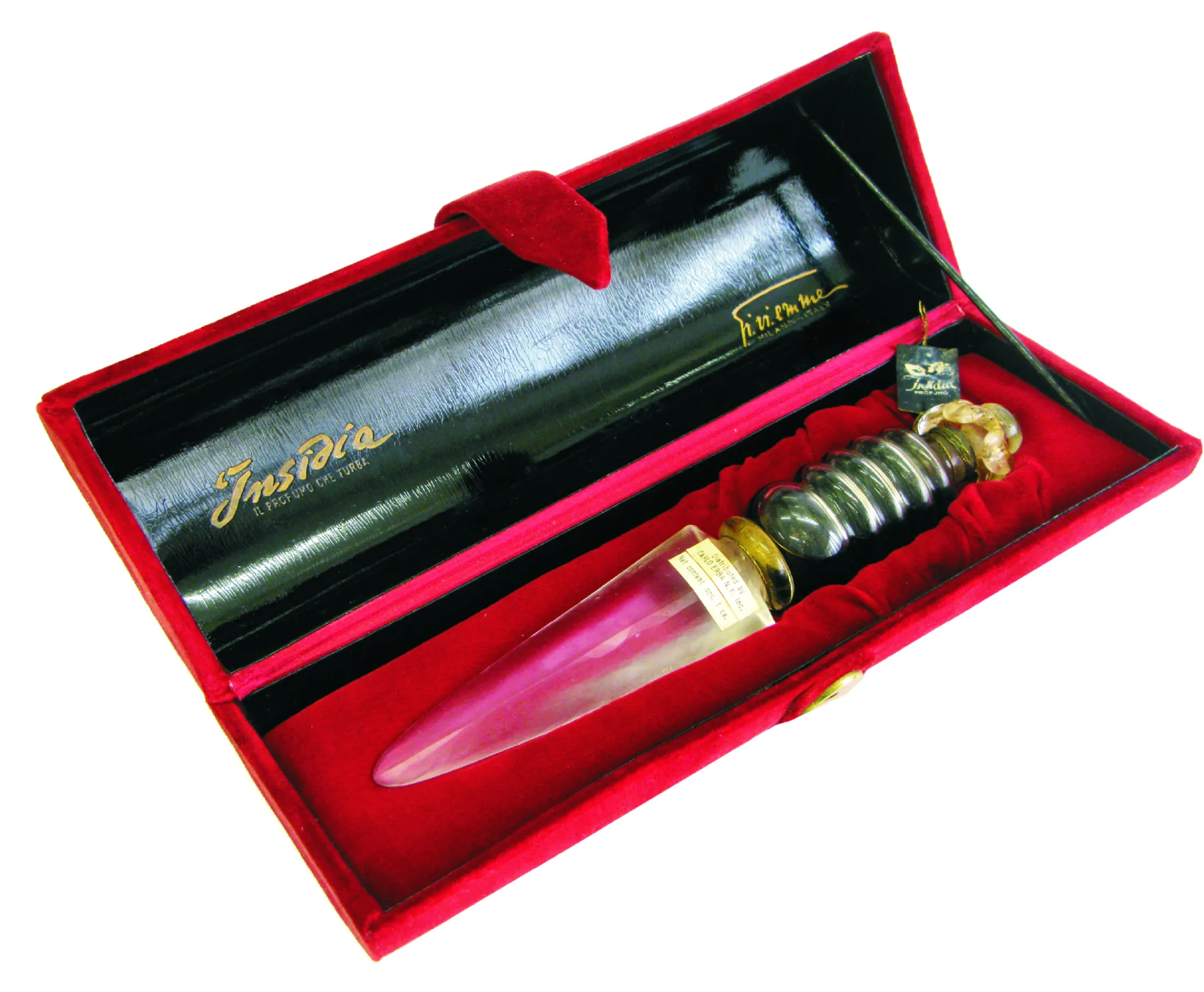 La collezione, curata da Daniela Candio, raccoglie oltre mille fragranze ed essenze, contenute spesso in piccoli capolavori disegnati da grandi nomi, come l’artista del vetro del Novecento René Lalique che insieme all’essenziere François Coty crea la sua prima opera, lo “Scarabèe”; la stilista e costumista Elsa Schiaparelli, che collabora con Salvador Dalí in veste di designer, disegnando il flacone “Le Roy Soleil” del 1945.