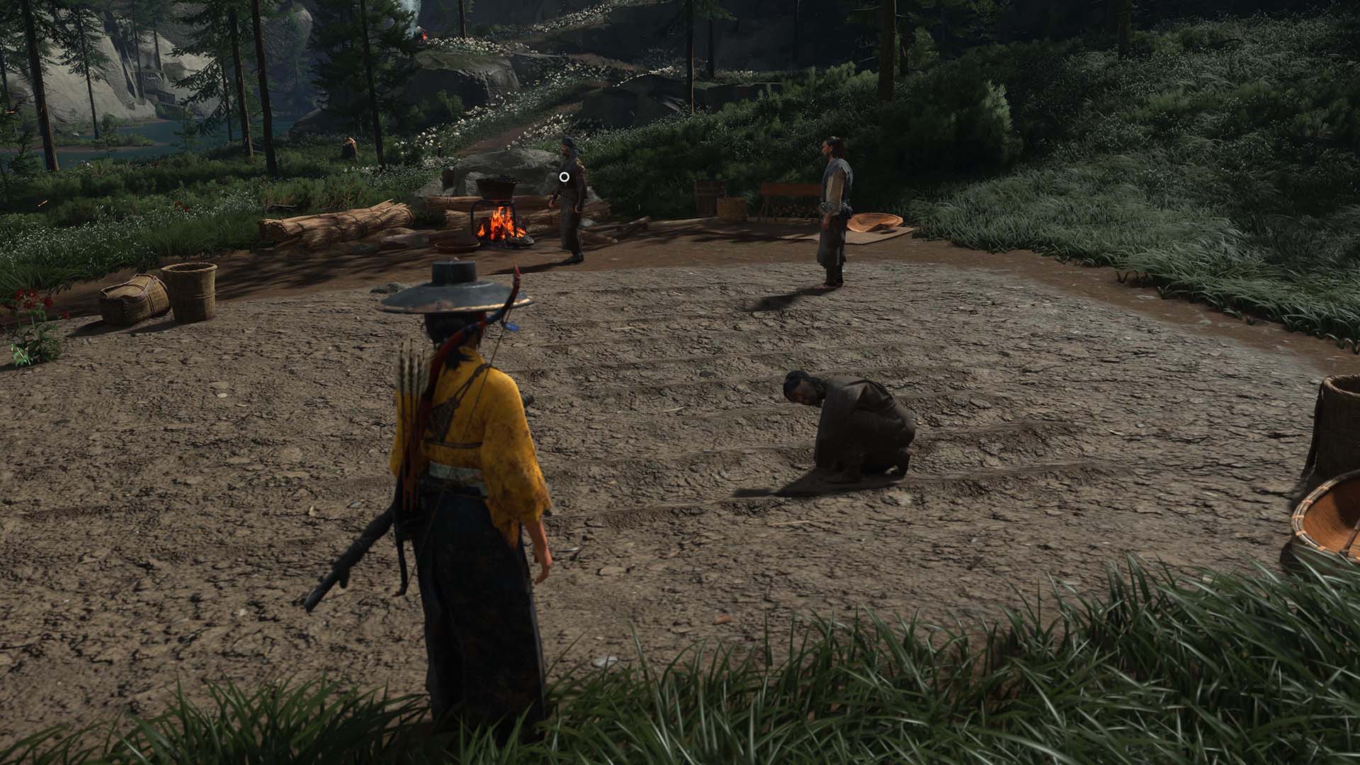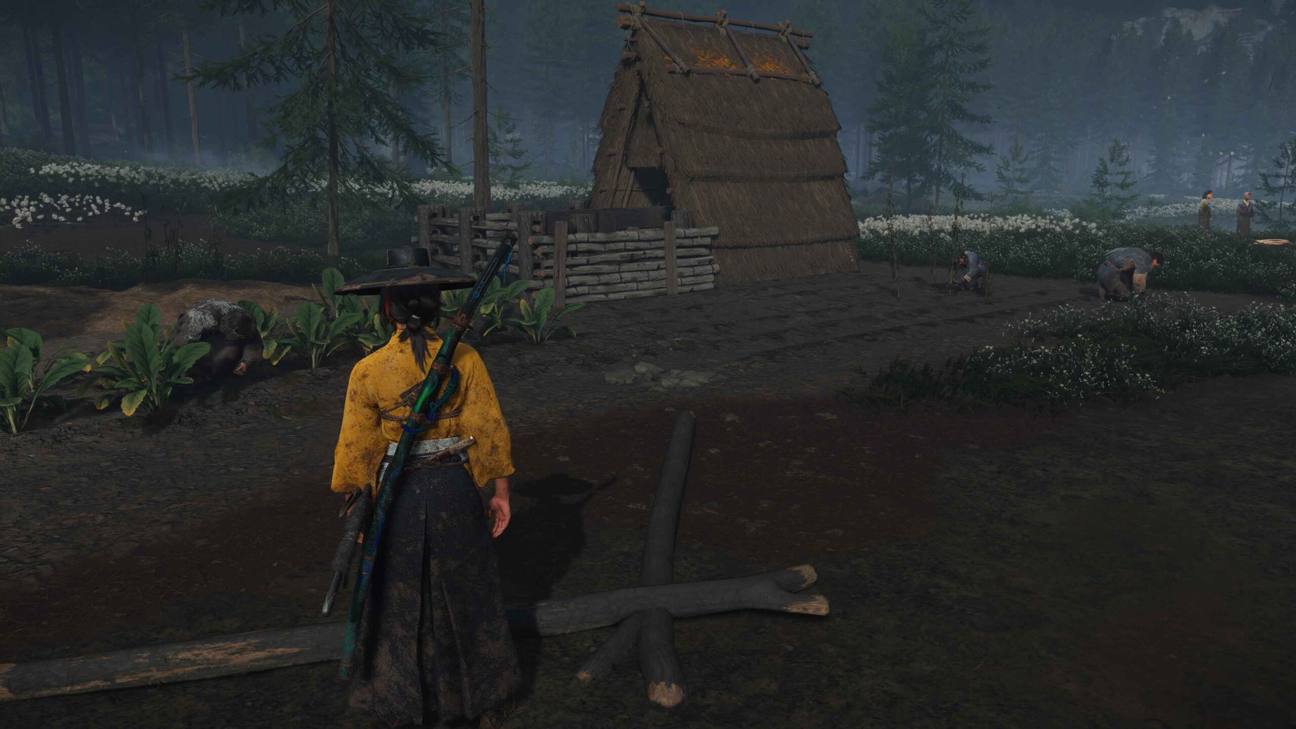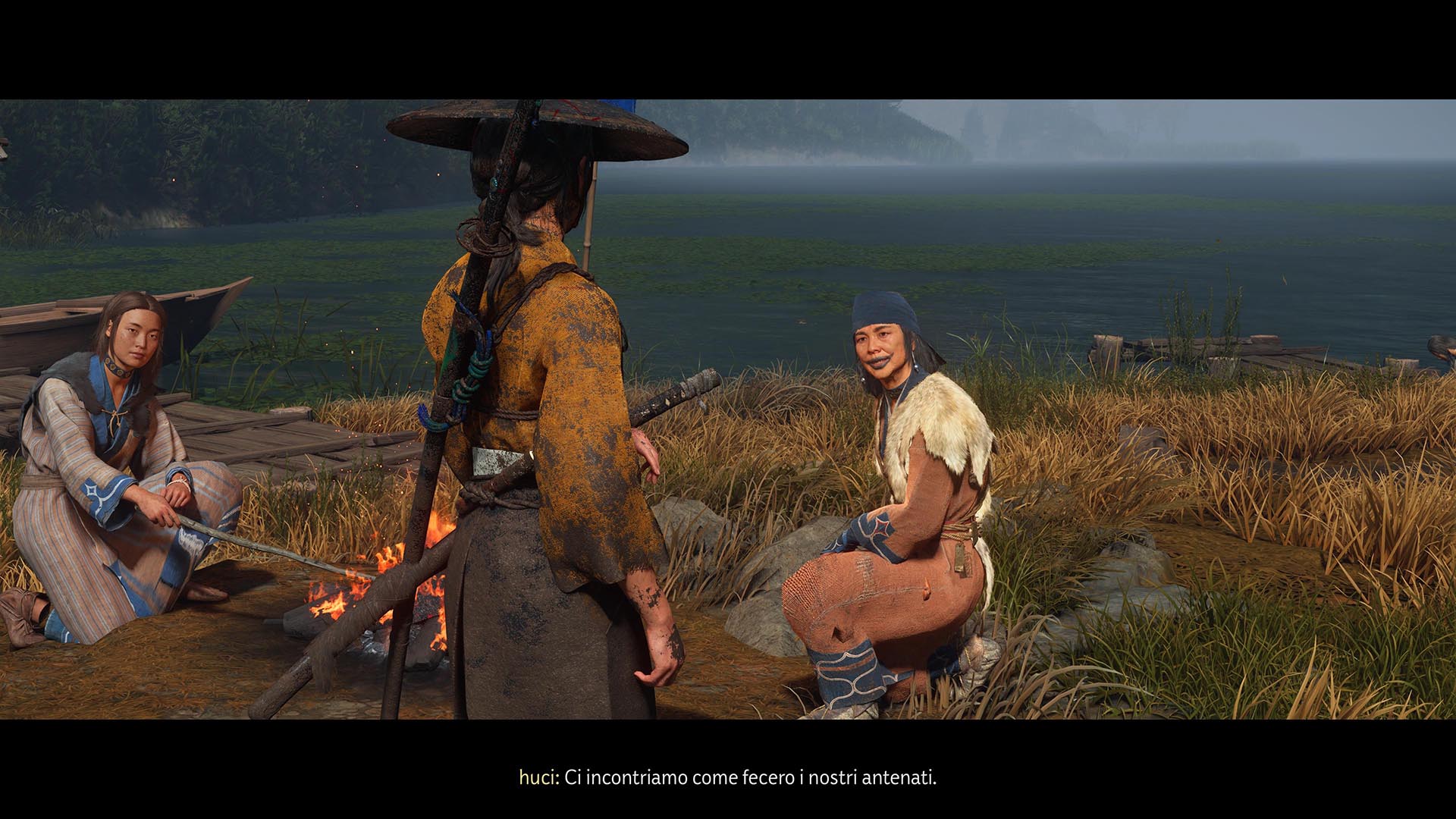 Un altro esempio di questa tensione tra storia e immaginario, tra oriente e occidente, è la rappresentazione di Hokkaidō, che nel 1603 non faceva ancora parte del Giappone ma delle terre di Ezo. Hokkaidō era ainu mosir, la terra della popolazione indigena ainu, anche se già esistevano insediamenti commerciali giapponesi nella sua parte meridionale. In Ghost of Yōtei possiamo effettivamente incontrare personaggi ainu e per molte persone sarà probabilmente la prima occasione per scoprire la loro cultura, i tradizionali tatuaggi femminili o il rito dell’iyomantee. Pure in Giappone il riconoscimento della popolazione ainu come popolo indigeno etnicamente distinto è arrivato solo nel 2019. Per realizzare questa parte del gioco, Sucker Punch ha lavorato con una consulente specializzata, Yukiko Kaizawa, e ha visitato il museo di cultura ainu di Nibutani per raccogliere documentazione. Ma nell’Ezo di Ghost of Yōtei il popolo ainu fa giusto una comparsata mentre ovunque, e ben oltre la penisola meridionale di Oshima, vediamo segni della presenza giapponese, dispersa in una terra che, durante la nostra intervista, Wang definisce ripetutamente “wild” (selvaggia) e “untamed” (non addomesticata, selvatica), seguendo la rappresentazione di Hokkaidō come frontiera e terra nullius da colonizzare che il Giappone ne ha dato a partire dall’era Meiji (1868-1912), tra l’altro momento di definitiva apertura all’occidente. Eppure, ed era vero soprattutto all’epoca di Ghost of Yōtei e in parte si vede nel gioco, le popolazioni ainu affiancavano a caccia, pesca e raccolta anche la coltivazione e, in alcune zone, pure l’allevamento, come raccontato dalla storica Tessa Morris-Suzuki in Creating the Frontier: Border, Identity and History in Japan’s Far North, in East Asian History (1994).