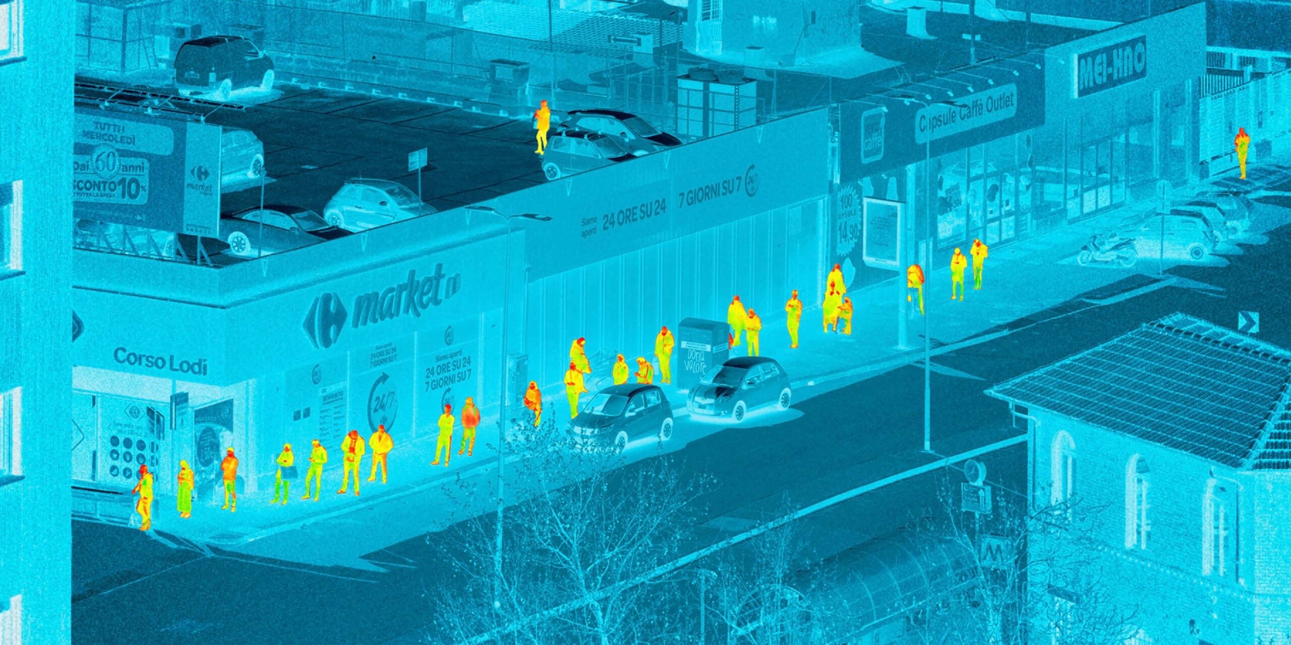 Non è una questione tecnologica. È un conflitto di sguardi, e di potere. Chi ha attraversato il 2020 conserva una memoria visiva precisa: strade deserte, ingressi sorvegliati, ospedali, supermercati, soglie. Il corpo ridotto a un campo cromatico instabile, una macchia arancione o viola leggibile solo come dato termico. Nessun volto, nessuna espressione, nessuna possibilità di riconoscimento. Solo temperatura. Solo idoneità o rischio. Il thermal imaging, sviluppato in ambito militare, affinato nei sistemi di puntamento e nelle operazioni notturne, è passato dalla guerra alla medicina, dalla sicurezza alla vita quotidiana. Durante la pandemia è diventato un’infrastruttura invisibile dello sguardo pubblico: un’estetica senza autore (proprio per questo incontestabile) che ha ridefinito, silenziosamente, il modo in cui i corpi venivano percepiti. Eppure, proprio in quel passaggio, qualcosa si è incrinato. Alcuni artisti hanno iniziato a usare quella stessa tecnologia non per semplificare il corpo, ma per complicarlo. Non per ridurlo, ma per restituirlo.