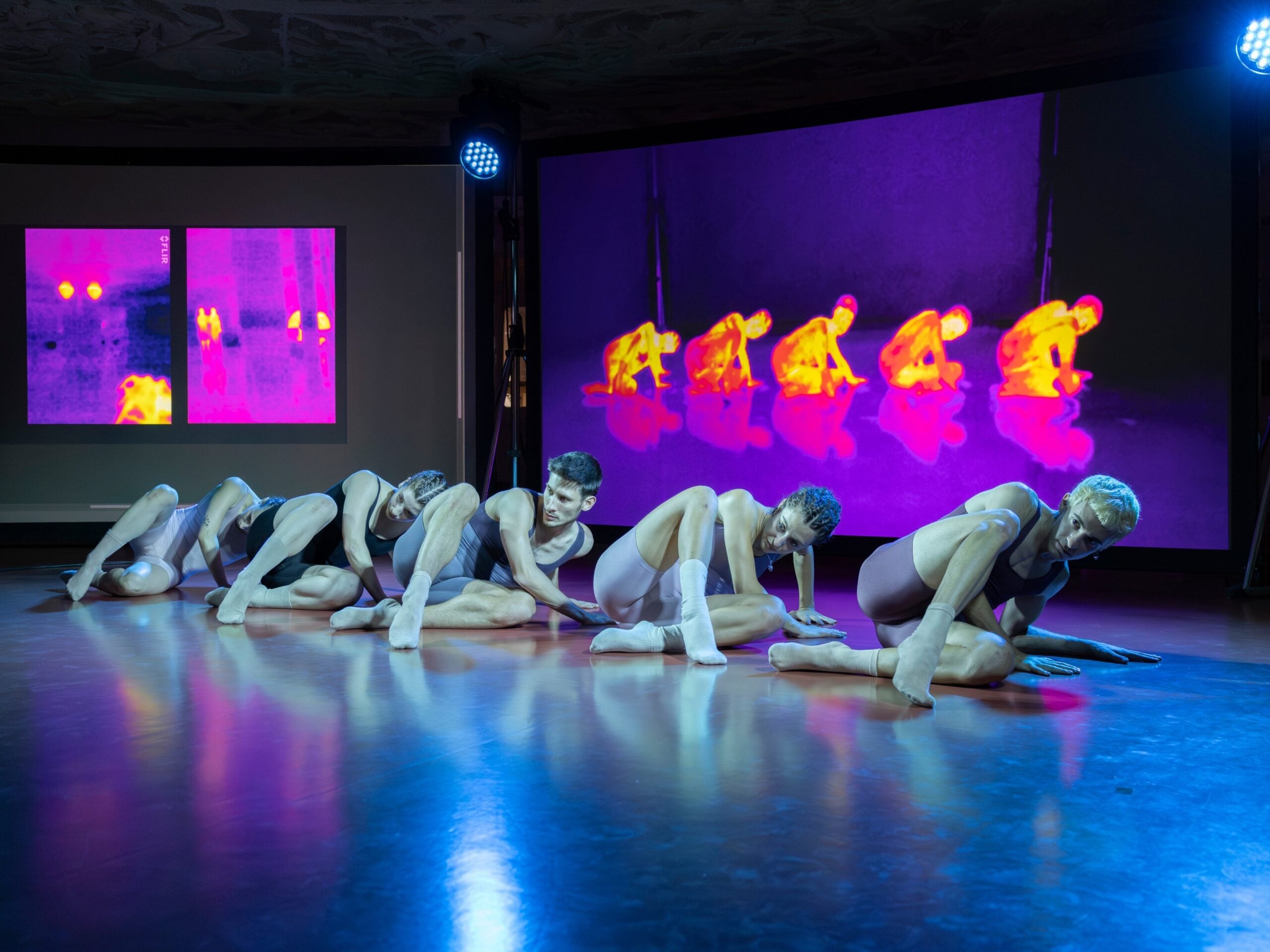 Stefania Ballone porta con Heat-Us(2025, progetto ideato da Chiara Cappelletto, Giulio Galimberti e Arcangelo Merla) la termografia nella performance. Il calore diventa materia scenica. I corpi non rappresentano: irradiano. Il pubblico non osserva: entra nel dispositivo, si riflette, si espone. Lo spazio si fa membrana. Il cinema trova una delle sue forme più radicali in Waking Hours (2025) di Federico Cammarata e Filippo Foscarini, presentato alla SIC della Mostra Internazionale d’Arte Cinematografica di Venezia. Girato lungo la rotta balcanica, il film segue un gruppo di passeur afghani. La visione notturna costruisce un mondo opaco, inaccessibile. Poi, nel finale, l’infrarosso: i corpi appaiono come tracce di calore. Non più invisibili, ma nemmeno riconoscibili. È qui che l’immagine smette di essere guardabile. Chiude il ciclo di dialoghi Thermodynamics of a Singularity (2020–2022) di Lorenzo Bacci e Flavio Moriniello, presentato alla Triennale Milano, nell’ambito di REFOCUS. Un archivio visivo nato nel cuore del Covid, dove la termografia è ormai linguaggio collettivo: interiorizzato, normalizzato, quasi invisibile. L’opera lo riporta in superficie, lo rende di nuovo interrogabile. Un passaggio che richiama inevitabilmente Virus, il progetto di Antoine d’Agata durante la pandemia in Francia: immagini realizzate in condizioni limite, dove il corpo non è mai documento, ma esposizione. Intensità prima che identità.