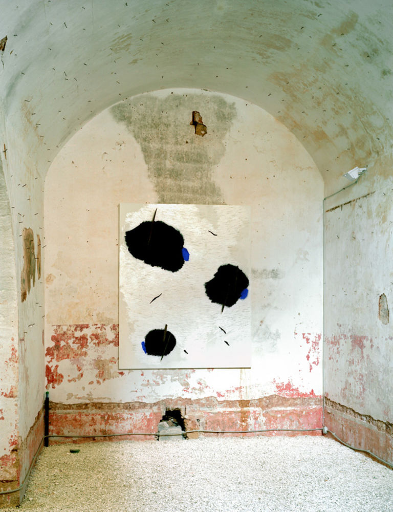 Quel palazzo, che fu sede dei marchesi locali, oggi vuoto e memore dei danni provocati dall’incuria degli uomini e dalle offese del tempo, è sembrato a Gastini l’alveo naturale in cui depositare alcune delle sue opere più recenti (datate tra il 2005 e il 2011, con l’eccezione di una del 1999), senza turbare la quiete metafisica di quegli spazi, testimoni di vicende a volte liete, più spesso tragiche.