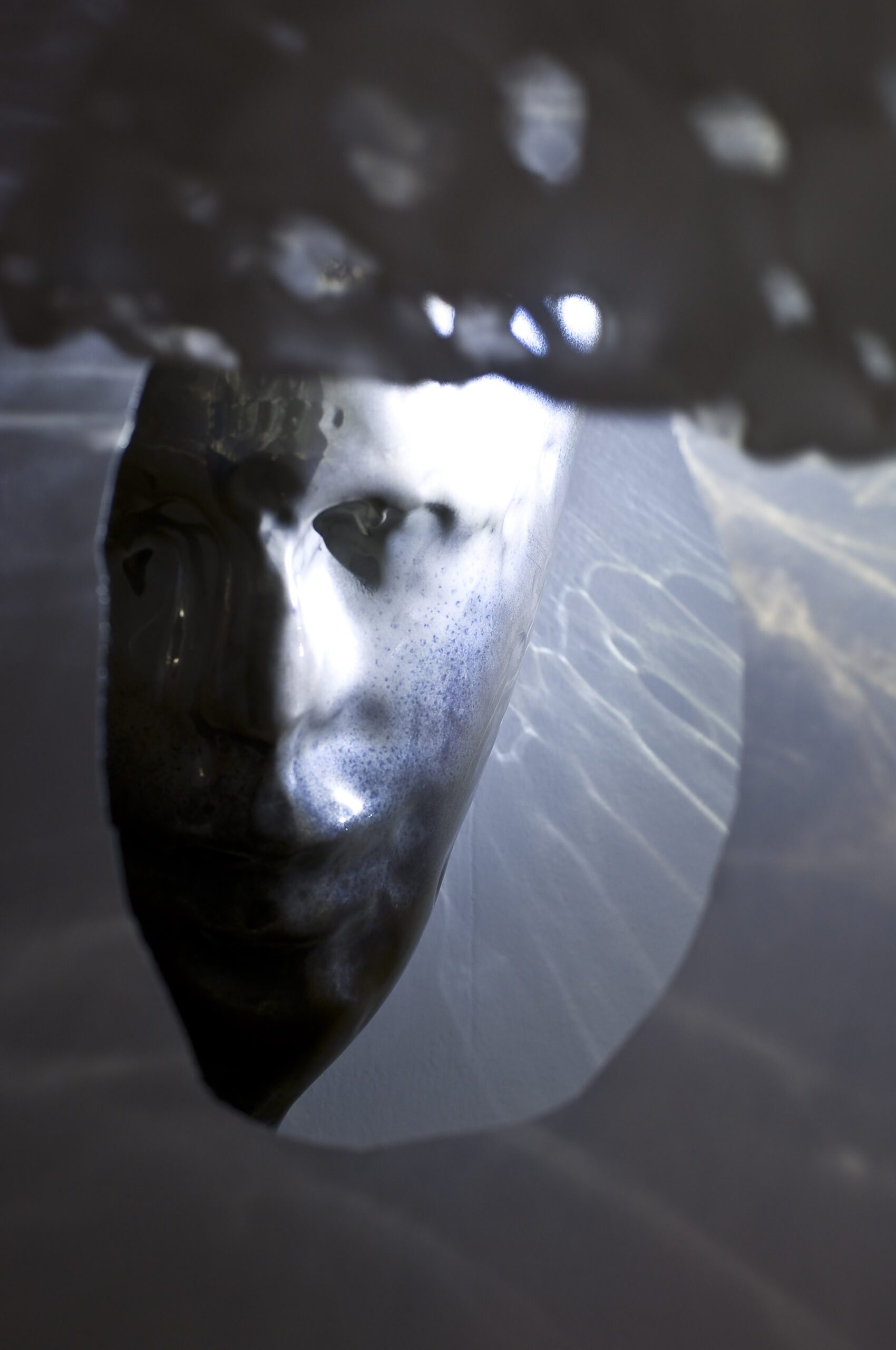 Ceccobelli propone un’installazione di forte portata scenica: una stanza bianca buia, la stanza dei 22 Arcani Maggiori, dove il visitatore scopre 22 maschere in ceramica raku nate dal calco del volto dell’autore. Un percorso alchemico che racconta, attraverso maschere diverse ma simili, l’evoluzione dell’artista e dell’uomo. I due giovani invece si lasciano trasportare dall’energia del tema. L’uno, Vizzini, nella forma geometrica, l’altro, Petrucci, nell’intrico di tele e linee che dal piccolo vanno a costituire il macroscopico.