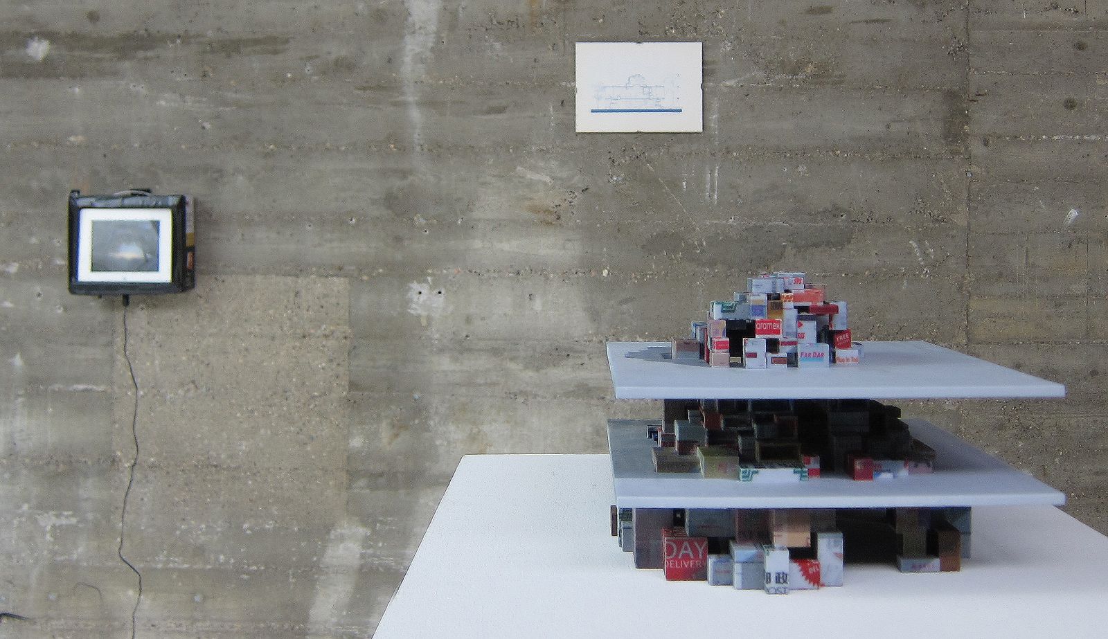 Su questo sfondo si articola l’intelligente opera di Andreas Angelidakis (Atene, 1968), architetto, artista e utopista che ha immaginato – con un’installazione, un video, una maquette e delle planimetrie – l’ipotesi di come la forma di una villetta di un’indefinita periferia potrà apparire nell’immediato futuro. Al centro della casa ecco levarsi la “montagna” di scatole di cartone, con i riconoscibili loghi delle società di consegne, portatrici di quell’estetica che da Marc Augé fino alla nuova declinazione di Angelidakis rappresentano il segno della compenetrazione tra l’anonimato dei non-luoghi di transizione e l’intimo spazio delle nostre abitudini.