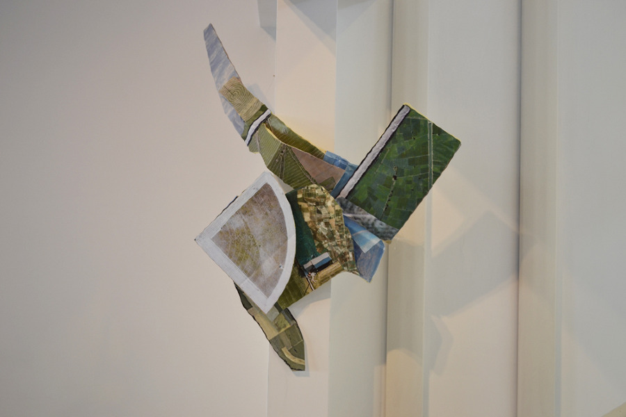 Julia Klemm (Bachnang, 1983; vive a Monaco di Baviera) realizza composizioni in bilico tra collage e scultura, attingendo a immagini satellitari relative a porzioni di superficie terrestre, apparentemente più “astratte” che reali. Le sue sono fantasie di compressioni dell’immagine ambivalente del mondo, che assumono sembianze di leggiadri meteoriti, grazie alla qualità “terrigna” del cartone, e al fatto che per paradosso la loro “pelle” ha connotati optical e riduzionisti.