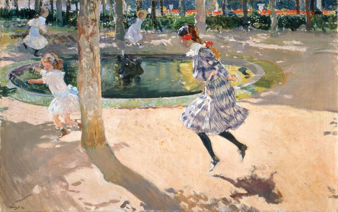 L’Andalusia e il giardino della sua casa a Madrid, in un’armoniosa, misurata coerenza, un legame che nasce anche da un progetto molto amato, accudito con dedizione: Sorolla fa infatti arrivare da quella terra piante e fontane. Nella prima sala, anche l’Autoritratto, lo sguardo verso lo spettatore, un aspetto borghese, ma senza a rinunciare ai suoi colori, agli elementi essenziali della sua arte.
