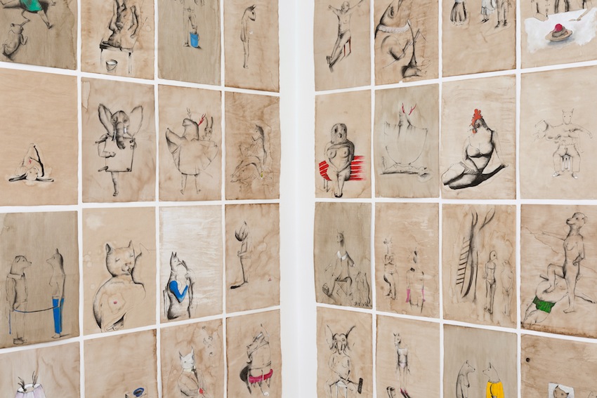 Composizioni che ricordano le creature immaginifiche di Ericailcane, corpi che richiamano alla memoria la Fattoria degli animali di Orwell, figure che rievocano alcuni brani della letteratura medievale. Il mondo magico messo in campo da Cristina Gardumi (Brescia, 1978) con Girlbook/Boybook, la sua prima personale organizzata per gli spazi di Dino Morra, si nutre di prefissi compositivi tratti dal mondo dell’illustrazione e dell’animazione delle origini per costruire – mediante sottili agi antropologici – un corpo pulsante di personaggi evanescenti e fragili. Un personale (passionale e intimo) bestiario fantastico ricco di atmosfere poetiche che antropomorfizzano esseri e cose mediante un disegno dolce, un progetto teso a vaporizzare la realtà e a concepire un nuovo, irresistibile e necessario tempo interiore “per diventare bambini” (Pablo Picasso).