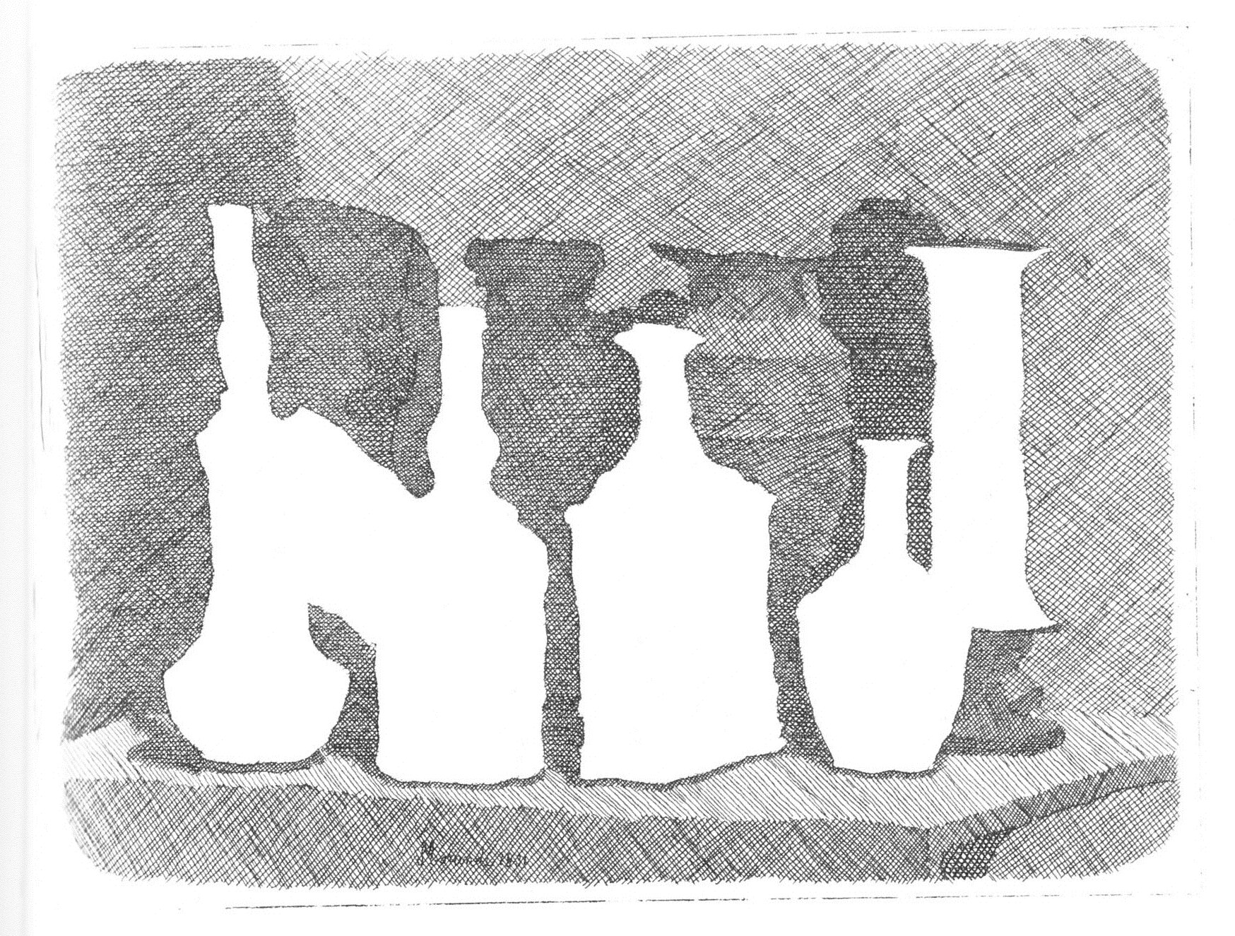 Tra l’Accademia di Belle Arti di Bologna, dove studia tra il 1907 e il 1913, e Firenze, dove si reca nel 1910 a vedere le chiese e gli Uffizi, Morandi fa conoscenza con i grandi del passato: Giotto, Piero, Chardin, Corot e il suo adorato Cézanne, che “incontra” dal vivo solo molto più tardi, nel 1956 all’antologica di Zurigo, nell’unico viaggio all’estero fatto nella sua vita. Come molti altri artisti a lui contemporanei, anche il bolognese fu momentaneamente attratto nell’orbita del Futurismo (Natura morta con bottiglia e brocca, 1915) e dalla Metafisica di Carrà e de Chirico. Ma furono fasi passeggere queste, anche se importanti, che dimostrano una partecipazione, sebbene discontinua, al dibattito culturale del XX secolo. L’eremita di via Fondazza era chiaramente in contatto con il mondo.