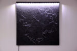 Otto/otto come le opere esposte, come il simbolo dell’infinito, come il numero delle costellazioni riconosciute dall’UAI – Unione Astronomica Internazionale. Un viaggio nel cosmo con Nicole Voltan (Mestre, 1984; vive a Roma): minuziosi ricami danno vita a metamorfosi astrali, narrate in forma libera, quasi un gioco di luci e ombre illusorio, metafisico, apparente. Partendo dal concetto di instabilità cosmica, l’artista disegna stelle che, come aghi, tessono un ricamo dall’infinità varietà di forme. Appassionata di scienze, ha saputo unire la passione e lo studio alla creatività, fondendole. Trame celesti, illuminate al led, su tavole di legno cosparse di malta micacea. E come sottofondo, melodie e suoni creati dall’artista stessa. Un gong scandisce i momenti di riflessione e le note al pianoforte sottolineano i tempi creativi. Il mondo agli occhi di Nicole Voltan è davvero un firmamento di intrecci e forme senza fine.