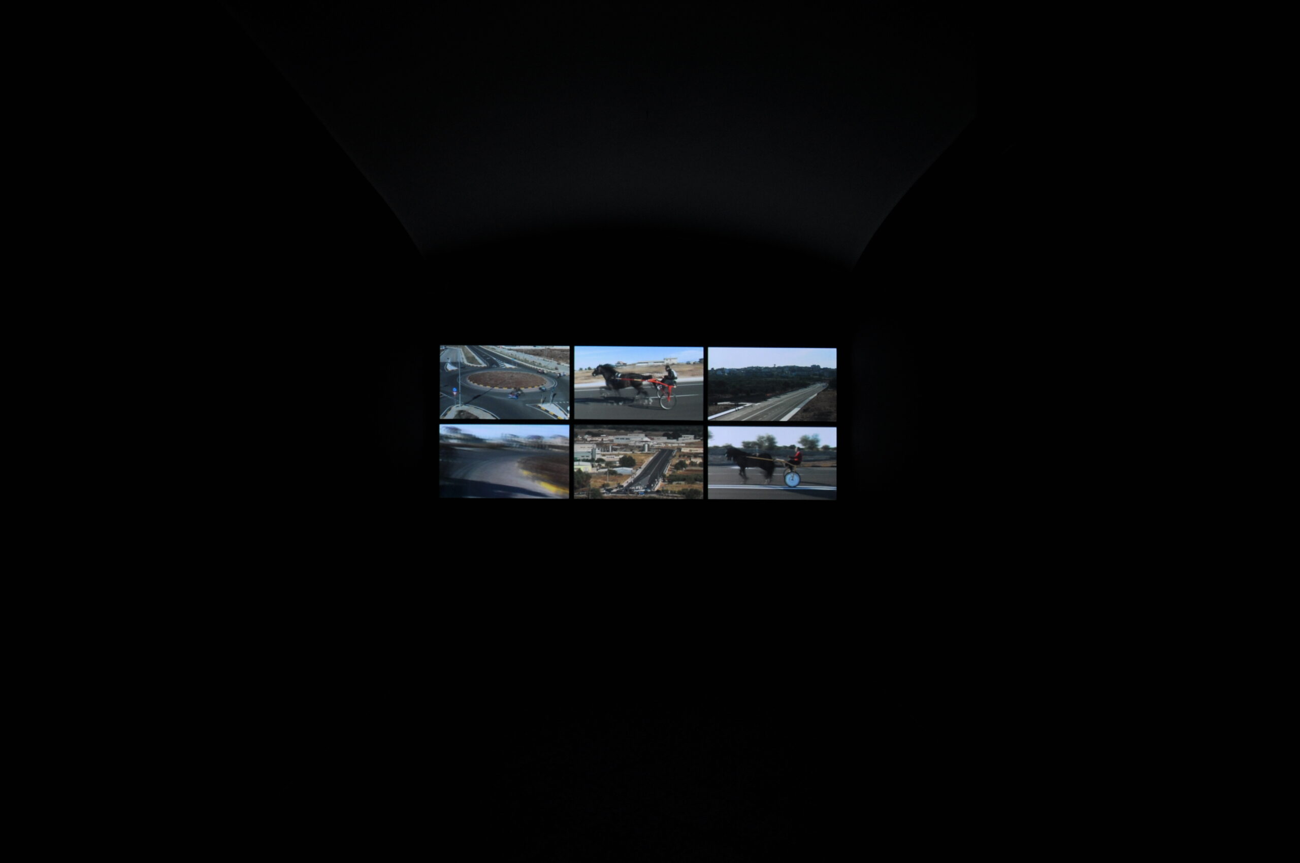 Un dialogo che s’innesca tra i frame di Tatlin’s Whisper #5di Tania Bruguera, documentazione della performance realizzata nella Turbine Hall della Tate Modern, decostruzione dell’immagine del cavaliere attraverso una dislocazione in un ambiente altro; e in Ottana di Pietro Mele,video nel quale un polo petrolchimico svelato gradualmente dalle immagini contrasta con gli archetipi dell’uomo a cavallo e della campagna, una critica immanente su uomo, natura e progresso. È un dialogo che si consolida in Pentimenti, opera di Carolina Saquel, dove un cavallo esegue movimenti su ordine del cavaliere, benché i comandi siano pronunciati da una voce fuori campo che descrive lo svilupparsi dell’azione.