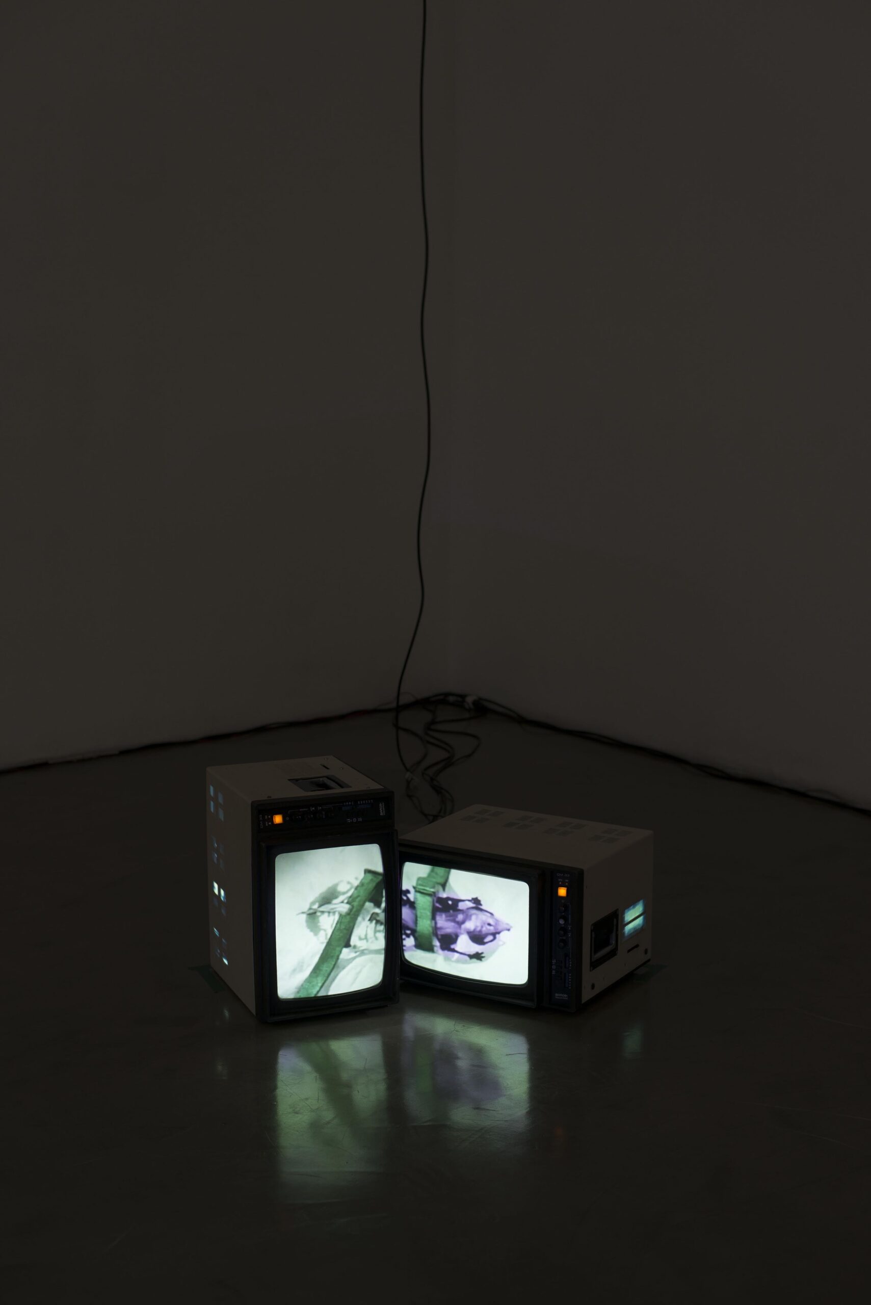 Lo spazio del Magazzino di Roma è ancora protagonista di una sperimentazione che ne modifica i campi d’energia. Daniele Puppi (Pordenone, 1970; vive a Roma) ha definito gli ultimi lavori “dispositivi minimi di rianimazione multisensoriale”. Sono diversi i dispositivi che l’artista utilizza: in Fatica n.17 era il corpo stesso dell’artista, in Blast sono le immagini di un repertorio già esistente che Puppi stravolge con ironia e dilatazioni di senso. Prima le proiezioni avvenivano su pareti della galleria, ora al centro dei due spazi ci sono due monitor degli Anni Ottanta accostati l’uno all’altro, dove le immagini a volte si delineano perfettamente sugli schermi, a volte ne fuoriescono formando una sorta di scultura di visione. Le nostre associazioni mentali si moltiplicano, meglio lasciarsi andare alla rianimazione sensoriale: accelerazioni convulse, variazioni ed aumento di entropia.
