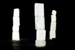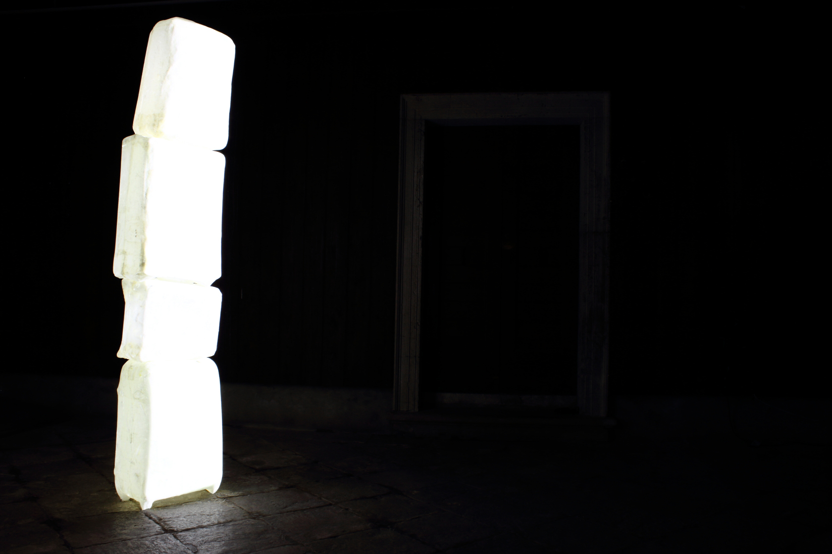 Agglomerati modulari, dalle dimensioni variabili. Ecco come si presentano le torri di valigie che compongono Crystal Suitcase, la nuova installazione di Martin Romeo (Carrara, 1986) che scandisce lo spazio della hall del centralissimo Palazzo Ca’ Bonvicini. Al loro interno è intrappolato il suono del respiro dell’artista ricevuto da un software e tradotto in una proiezione che segue le forme delle colonne; la valigia, un elemento già al centro di una precedente performance di Romeo, diventa sinonimo di viaggio e spostamento e si presenta statica nella sua disposizione spaziale quanto aperta alla dinamica influenza della luce.