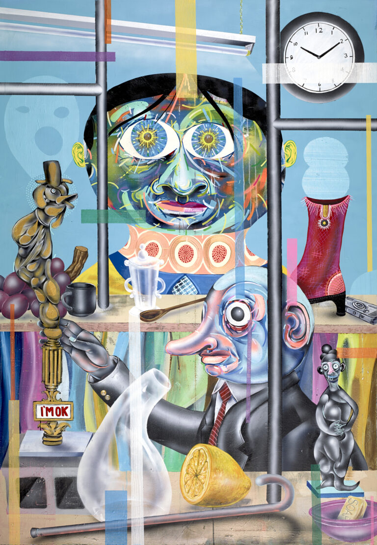 Suona quasi come una rassicurazione quell’I’m OK che titola la personale dei fratelli Rob (Dayton, 1963) e Christian (Denver, 1967) Clayton, duo di artisti statunitensi per i quali parlare di collaborazione sembra riduttivo. Lavorando sulla medesima tela, nello stesso momento, intuendo singolarmente la direzione che prenderà il tratto, ma discutendola e condividendola, i Clayton Brothers danno vita a narrazioni intensamente compatte, tanto più interessanti in quanto non è evidentemente solo nelle loro opere – quadri o installazioni che siano – che danno voce alle loro ibridazioni dell’io. Unanimemente considerati tra i più significativi esponenti del Pop Surrealism, diffusosi negli States a partire dagli Anni Novanta, i due fratelli mescolano nei loro lavori pop art e cultura underground, fumetti e cartoons, skateboard e surf, musica e psichedelia. Una trentina di opere inedite, un mix di dipinti, disegni e sculture realizzate per la mostra italiana e accompagnate dal testo di Ivan Quaroni.