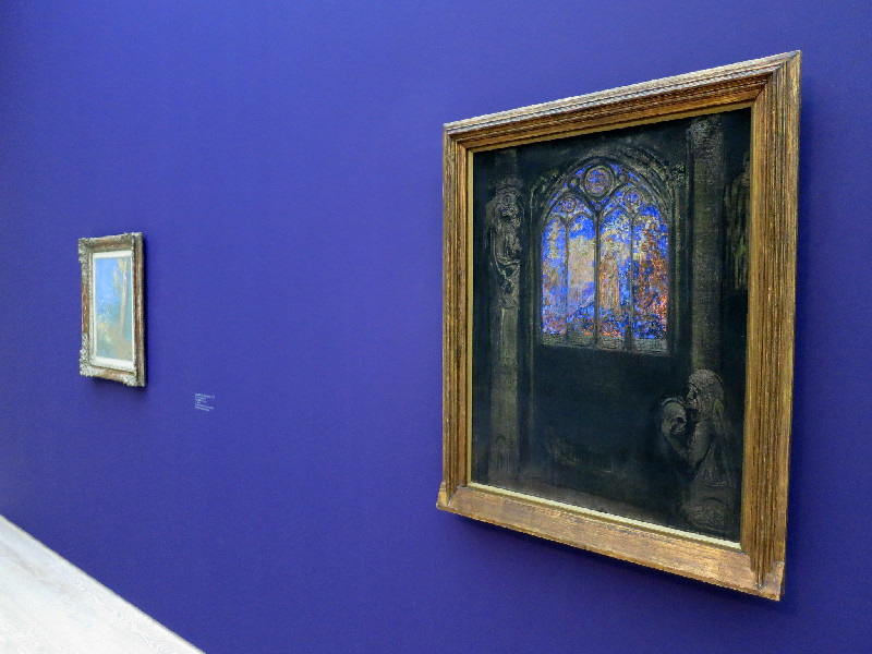 L’esposizione, fin dal suo principio, tocca con risolutezza la realtà oscura dell’immaginario di Redon, così come, con la stessa forza, si prolunga sulla sua ricorrenza a motivi floreali e ad accostamenti cromatici altisonanti. Dalla storia dell’arte alla letteratura e alla musica, passando per le filosofie e religioni occidentali e orientali, fino alle scienze naturali, la mostra è concepita secondo un ordine cronologico libero e presenta le opere raccolte secondo insiemi induttivi. Dalle litografie ai pastelli su carta, agli oli su tela, i lavori sono frutto dei prestiti provenienti dal Museum of Modern Art, dal Metropolitan Museum of Art di New York, dal Rijksmuseum di Amsterdam e dal Musée d’Orsay. La retrospettiva regala un’intensità occulta lungo la prima parte del percorso che, strutturalmente schermato dall’esterno, racchiude, nell’alveo di pareti dai colori mistici, i noir giovanili di Redon, in una continua emancipazione di ombre e sogni metamorfici, trasformati in dialoghi visuali con l’indicibilità dell’inconscio.