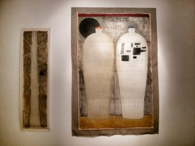 Il suo è uno sguardo tutto votato alla rappresentazione della Cultura in senso lato – racconta Manuela Arietti, responsabile di Eventinove – Lucia Pescador va a fondo in culture molto diverse e ogni mostra è un capitolo del suo Archivio del 900 con la mano sinistra”. L’artista, che fin dal ’65 è conosciuta anche a New York grazie alla collaborazione con la galleria Lattuada, ama costruire a parete le sue mostre (e solo quest’anno ha avuto sei personali!), alla ricerca di un equilibrio cromatico ed espressivo che dà vita a un’installazione: la parete allestita da Eventinove, infatti, altro non è che la riproposizione di quella nata nella sua casa-studio.