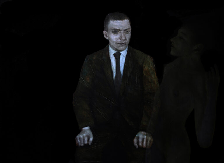 Come la terribile crocefissione femminile di Cristiano De Gaetano, ultima opera realizzata dall’artista tarantino prematuramente scomparso nel 2013. Come le strane sculture biomorfe di Ezia Mitolo (I Grumi e le mensole, 2014) o i Canestri di Iginio Iurilli. Come i dipinti di Domenico Ventura, allucinazioni rivestite di una delicata patina nostalgica (Terlizzi: chiesa San Michele Arcangelo, 2009). E come i Chiaroveggenti (2014) di Cetera, figure spettrali e meditabonde che emergono dal fondo bituminoso, separate dallo spettatore da uno schermo-filtro trasparente.