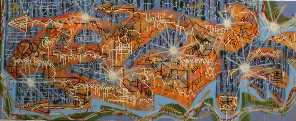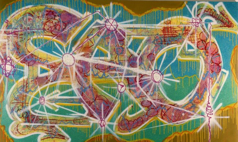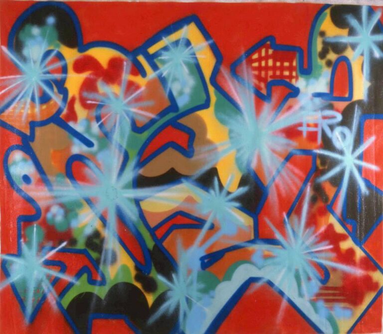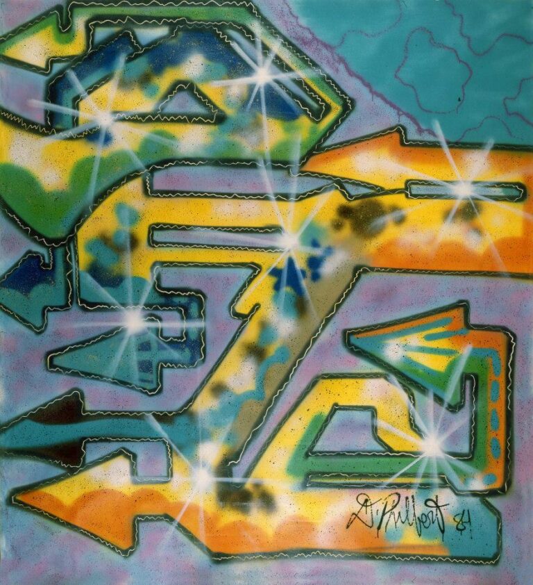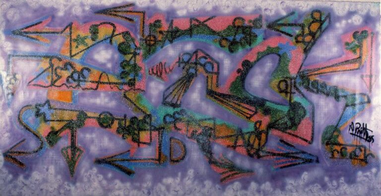 Portarlo a Martina Franca non ha solo i contorni della retrospettiva: Urban Mystical Expression racconta infatti il legame dell’artista con la Puglia, e i suoi soggiorni tra il 1984 e il 1985. L’espressione della “mistica urbana” cui fa riferimento il titolo, preso in prestito dalla serie esposta in mostra, si realizza nel labirintico intrecciarsi delle lettere che, perdendo la propria funzione primaria, diventano forme espressive. Il colore non è lussureggiante, sbiadisce in una stesura poetica quasi chagalliana (Floating City Painting in the Olanda, 1984) o forse impallidisce, abbacinato e sublimato dallo scintillare saettante della luce sulle superfici. Ogni angolo è tagliato come un diamante, evoca messaggi, che spesso si traducono esplicitamente in scritte dialoganti con il naming iniziale (Untitled, 1984). E le parole sono le più semplici, ma le più belle. Quelle attorno alle quali costruire una vita: amore, unità, amicizia. Riaffiorano di tanto in tanto, poi, improvvisamente, scompaiono.