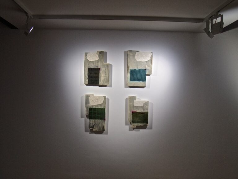 Le opere di Luca Coser (Trento, 1965; vive a Trento e Roma) riflettono questa teoria. Ogni quadro è un collage di citazioni, interne ed esterne all’opera stessa. Frasi, figure e forme compongono ogni lavoro, costituendo un universo conosciuto e allo stesso tempo sconosciuto, lontano e distante. Il collage non basta, perché dove compare una figura ce n’è un’altra che svanisce, in un continuo dialogo con l’osservatore.