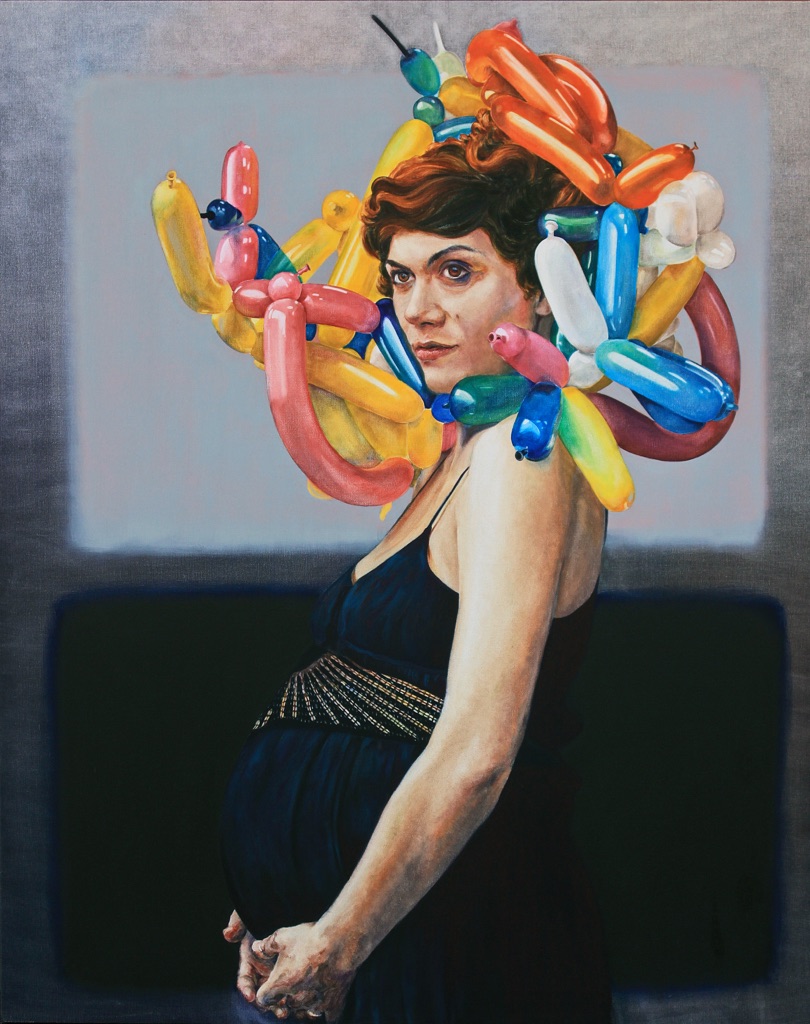 Le citazioni non mancano e affrontano le radici nella tradizione pittorica, in primis francese. La fa da padrona la Gioconda, protagonista della serie Memento M., che racconta un po’ Leonardo, un po’ Francis Bacon, un po’ Duchamp, un po’ la pittura d’espressione. Gaël Davrinche (Saint Mandé, 1971; vive a Parigi) ne fa un po’ ciò che vuole: l’ama, la tortura, la sevizia, magari tracciando un segno rosso gli angoli della bocca, la pone in contesti improbabili, usando spesso il segno grafico e creando, deformando o cancellando con il colore. Fanno da contraltare a questa serie i personaggi perfettissimi della serie dei grandi ritratti iperrealisti che occhieggiano dirimpetto dall’altro lato della sala espositiva.