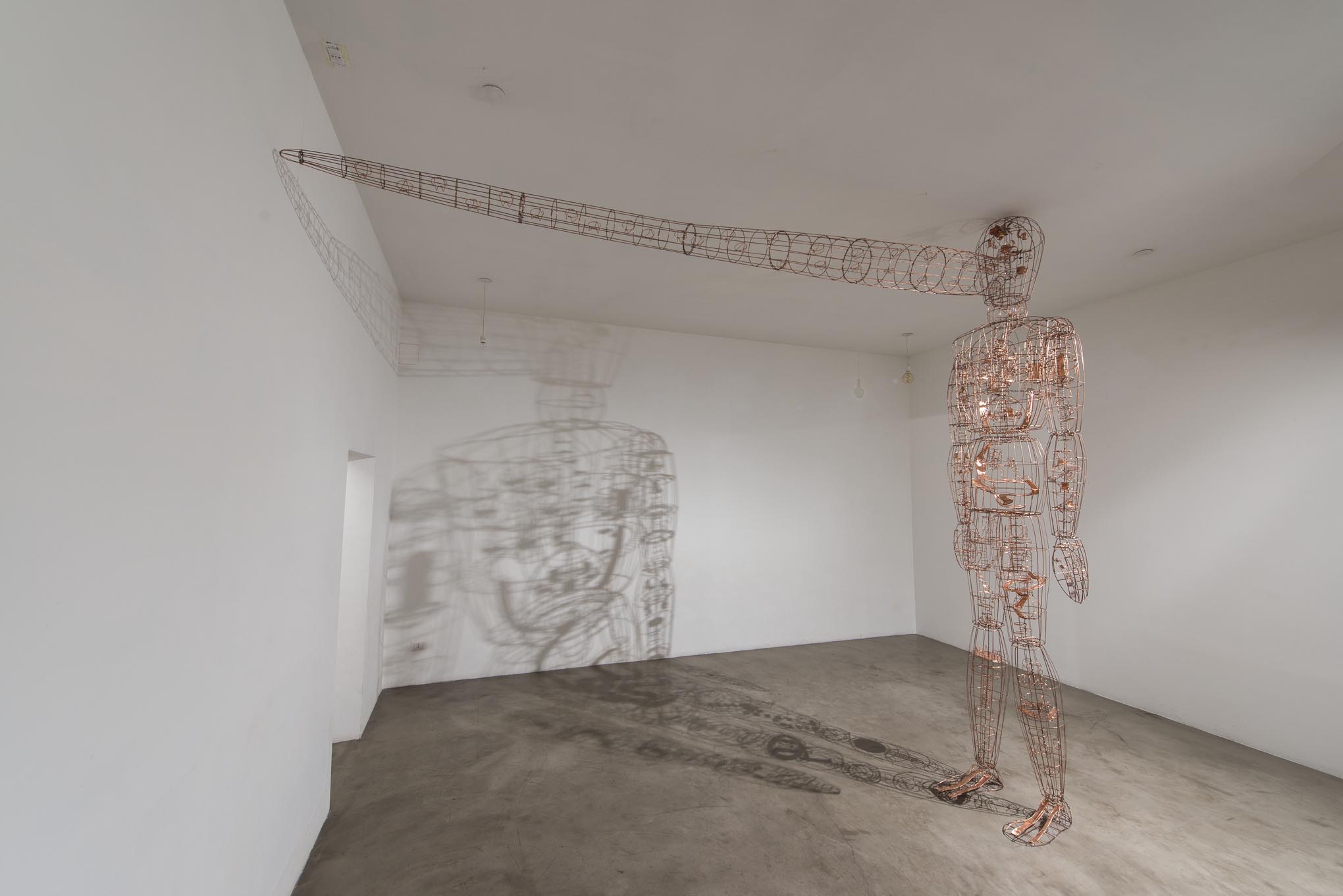 Homo Ludens è la definizione dello storico olandese Huizinga alla quale si ispira l’omonimo progetto dell’artista Arina Endo, (Hyogo, 1983) e di Gianluca Malgeri (Reggio Calabria, 1974). Il gioco, come monito a decrescere, è il tema centrale della mostra, composta prevalentemente da installazioni realizzate in rame. Malgeri reinterpreta l’immagine della nostra cultura in termini di suggestione spuria, mentre Endo ricerca una geometria della natura che crea una ludica e piacevole illusione ottica. Due sguardi prospettici impregnati della propria cultura d’origine ma vicini al punto da convergere in un’unica convinzione: essere umani significa costruire la giostra che rende liberi.