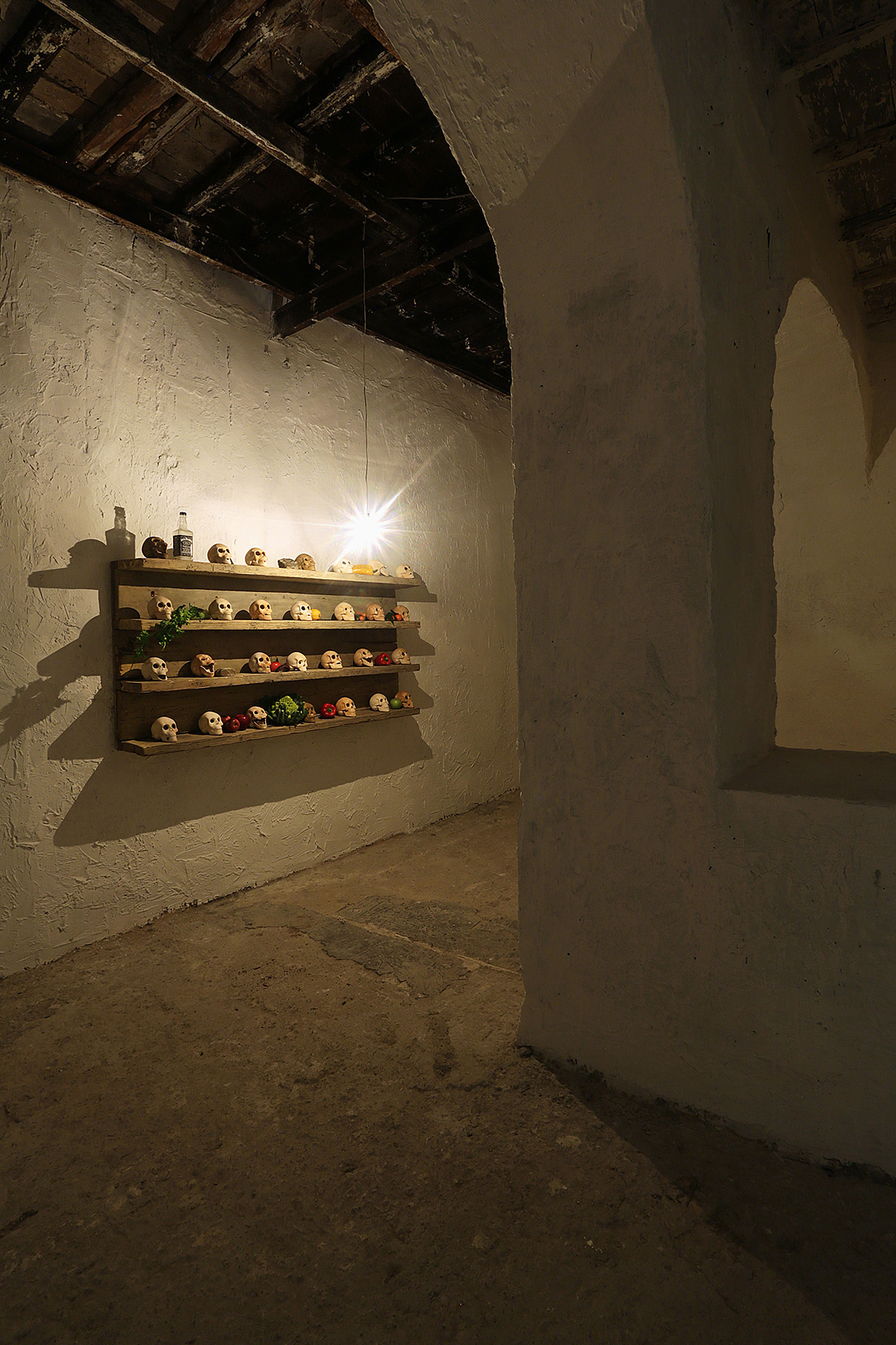 L’orgasmo racchiude la forza vitale dell’Eros, visto che “ad ogni vivente è dato in sorte il nobilissimo istante della morte; ma l’ultimo sospiro, l’ultimo spasmo, somiglia nuovamente ad un orgasmo”, come recita la filastrocca posta all’inizio del percorso espositivo – e ci sospinge, nel suo flusso inarrestabile, dalla vita fino alla morte e viceversa. Anime è l’ultimo manifesto di Andrea Branzi (Firenze, 1938) per la nuova “drammaturgia del progetto”, nella volontà di avvicinare la disciplina architettonica a tematiche antropologiche finora ignorate (qui trovate l’intervista che gli abbiamo fatto pochi giorni fa). Un’installazione site specific che si snoda negli spazi di Fondazione Volume! e tocca la materia di Roma. Teschi, elementi vegetali, tracce deperibili del contemporaneo ci ricordano la “barocca” caducità dell’esistenza, per un luogo delle anime scomparse, nel luogo delle anime morte e rinate per eccellenza. Lo specchio posto alla fine del percorso ascensionale ci ritrae vivi e morti “in un solo istante”; la colonna sonora è il primo orgasmo rock della storia, quello di Robert Plant in Whole Lotta Love.
