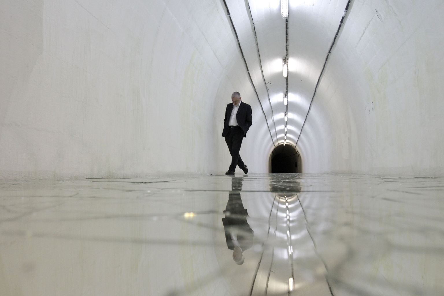 Ex Centrale di Daste e Spalenga, Bergamo – fino al 24 luglio 2016. Alla periferia di Bergamo, riapre l’ex centrale termoelettrica. L’artista cosentino dispone, a terra, un rivestimento di specchio sul quale si è invitati a camminare e a calpestare. Le centinaia di metri quadri di superficie riflettente amplificano l’edificio industriale del 1927, modificandone, anche, la permanenza della luce. Di giorno e di notte.