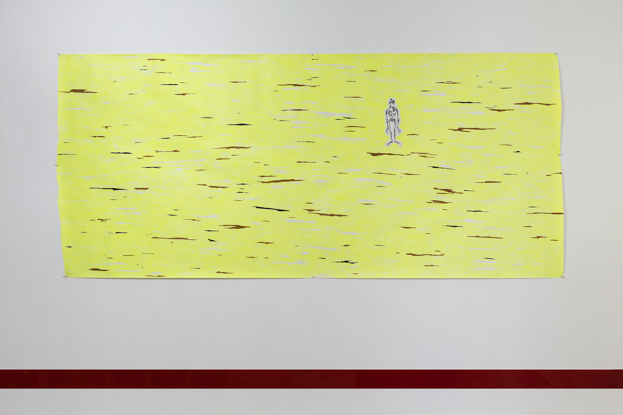 Come ultima mostra della stagione lo Studio Medico di via Vincenzo Bellini presenta Intervallo I, con gli artisti Lupo Borgonovo (Milano, 1985) e Lisa Rampilli (Milano, 1982) e la curatela di Anna Musini. Le opere, collocate nella Sala d’Aspetto, colpiscono per l’essenzialità e allo stesso tempo per l’efficacia. Sono due lavori nati da un’esperienza condivisa, un viaggio a Bali e nelle isole Gili, testimoni della profonda influenza del paese indonesiano sui due artisti che condividono la loro casa-studio. La scultura di Lupo Borgonovo è il calco in bronzo di un piccolo pezzo di legno utilizzato come bancarella rudimentale e il disegno di Lisa Rampilli è una astrazione efficace e sulfurea della bassa marea sulla spiaggia. Le opere appaiono come due ricordi evanescenti rimaneggiati attraverso una traduzione prima mentale e poi concreta, che evidenzia la distanza degli approcci e della pratica dei due artisti e allo stesso tempo conserva la sensazione di un momento condiviso e la forza di luogo lontano, in ogni senso.