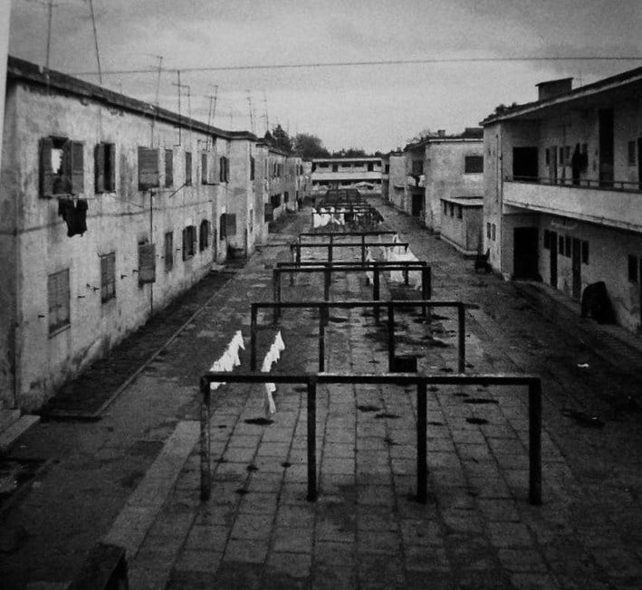 Al crepuscolo, con un tempo di scatto lento, tutto appare melanconico e impalpabile. È la borgata Gordiani situata a Roma est, da cui emergono le dimore provvisorie in una via fatta di pozzanghere e lampioni di luce in lontananza, che rischiareranno la notte oramai prossima. All’orizzonte si ergono annebbiati i complessi abitativi popolari, file enormi di palazzi anonimi. Pais ha indagato con fare antropologico la sua città; un luogo dalle facce eterogenee, dove tanto complesso quasi quanto oggi, seppur diverso, è il concetto dell’abitare. È entrato silenzioso nei quartieri e, con la camera fotografica, li ha scrutati, restituendo immagini in cui tutto appare immobile, in una dimensione dove il tempo e lo spazio, oggi, sembrano sospesi. Così, in un fotogramma del 1964, il quartiere di Tiburtino III sorge da un cortile esterno, dove in successione prospettica gli spettri di lenzuoli e di bianchi abiti si agitano al vento, in un giorno freddo di un ottobre che fu.