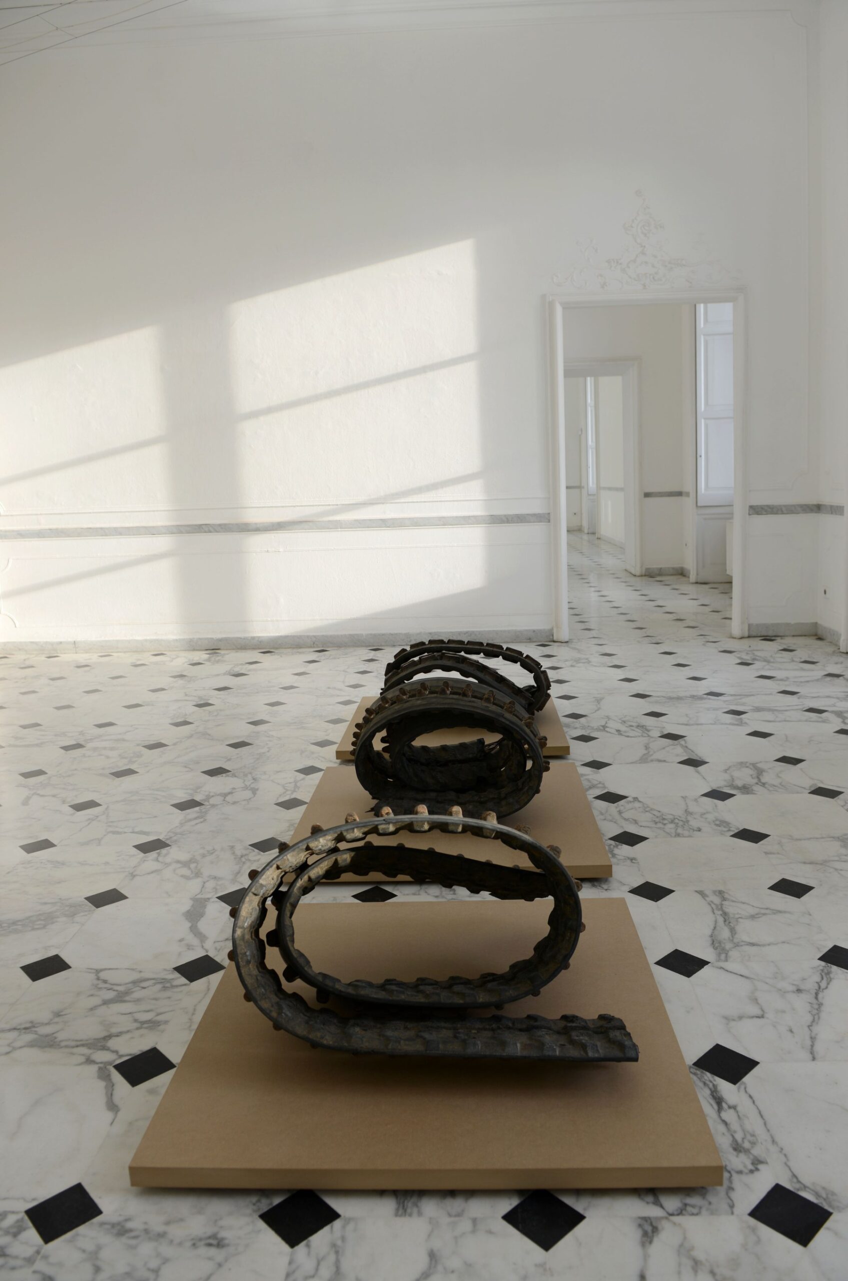 La mostra prodotta dal Museo di Villa Croce a Genova, High Gospel, si sviluppa lungo un percorso di installazioni sonore, sculture e disegni. Tutte opere che, per paradosso, si nutrono di un nichilismo vitalista: qui, in questo teatro malinconico, regolato da un funzionamento dis-funzionale, emergono le tracce di un passato perduto, frammenti dal sapore arcaico che esistono, però, nella spinta energica del ritmo, nell’intermittenza del suono, nel lavorio dei cingoli e nel roteare dei congegni. L’enigma costante di presenze fuori luogo e fuori tempo rivela la fatica di abitare uno spazio e di ridefinirlo: come se fosse una prova di resistenza, come se si trattasse di un’origine nuova, come se a esplorare le meccaniche segrete della natura, reinventandone codici e morfologie, si arrivasse a tramutare l’ordine in disordine, la stasi in entropia. E da qui, l’inverarsi – stanco, lento – di un paesaggio differente.