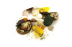 La lepre marinata incontra così il foie gras, lo zucchero mascobado e il sale alla vaniglia, e poispezie polverizzate (dalla cannella al ginepro, dai chiodi di garofano al pepe), erbe aromatiche frullate, porcini grigliati disidratati – anche questi ridotti in polvere -, briciole di biscotti al caffè e cioccolato, cenere di verdura, tritato di sedano rapa,tartufo bianco disidratato. Mistura raffinatissima, giocata sul filo di accordi disarmonici e apparecchiata come un’impalpabile tavolozza autunnale. Tra polveri profumate e pittura pastosa.