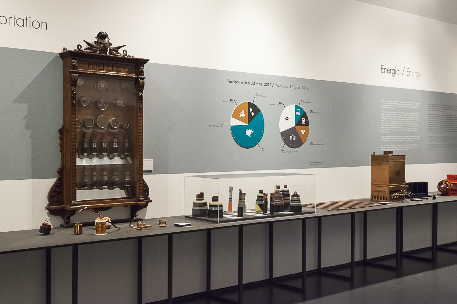 Per il design sono invece cento gli oggetti esposti, progettati da altrettanti nomi autorevoli della scena internazionale: da Gae Aulenti a Ron Arad, da Antonio Citterio a Tom Dixon, da Ross Lovegrove a Tobia Scarpa; per l’architettura sono raccolti dieci modellini legati a progetti di autori come Herzog & de Meuron, Renzo Piano, Aldo Rossi, Steven Holl, mentre la sezione dedicata alla tecnologia svela i molti settori cruciali in cui il rame viene impiegato, come l’informatica, la medicina, l’energia, i trasporti.