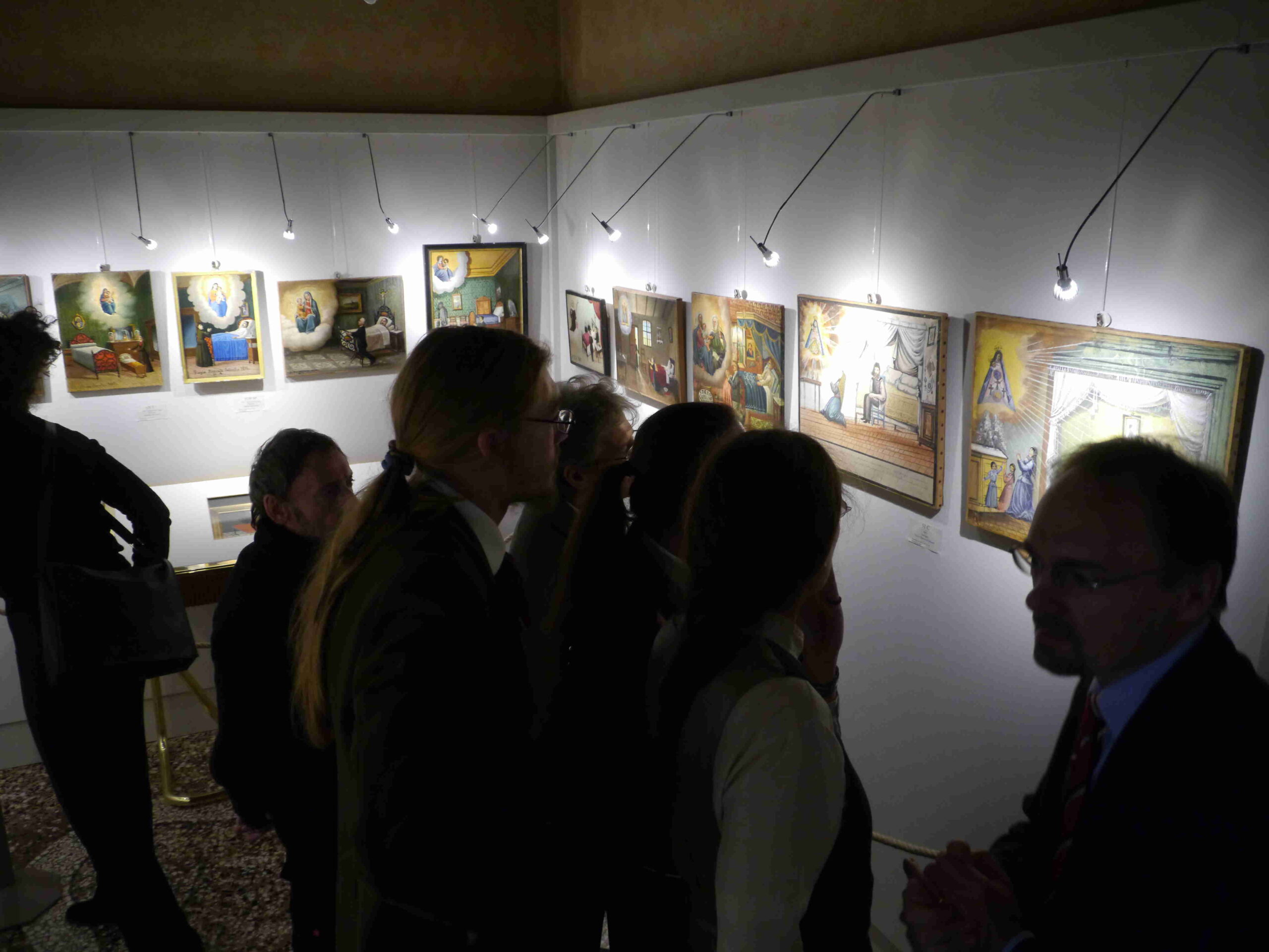 Una collezione ricchissima quella della Fondazione P.G.R., acronimo che evoca il tipico e classico “per grazia ricevuta”, custode paziente di una preziosa pagina di arte dallo spirito naif; realtà che stringe con lo spazio milanese un sodalizio che vede l’allestimento periodico di mostre a tema. Primo appuntamento con il focus che mette in risalto, anche grazie all’allestimento di ambienti che ricostruiscono con fedeltà la quotidianità di una tipica famiglia alto-borghese dell’Ottocento, la dimensione intima e privata della stanza da letto. Luogo del riposo e del piacere, trasfigurato in questo caso in teatro del dolore ma anche della speranza: tavolozze affidate a mani inedotte traducono, in una bidimensionalità che assume involontariamente i toni ieratici del bizantinismo, storie di gravidanze insperate e guarigioni inspiegabili; i nimbi e le mandorle si affollano di santi e angeli in posa plastica, nella fotografia di ritualità a cavallo tra sacro e profano. Le circa settanta opere esposte a Milano, infatti, tramandano sì il rapporto con una religiosità radicale, ma sanno anche testimoniare le piccole prassi quotidiane di cerusici e medici, guaritori e levatrici.