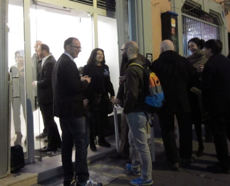 Un progetto che gioca a livello semantico fra la coniugazione del verbo sparire e quella del verbo sparare: “spiazzante soprattutto quando si scopre che il quadro è fatto con proiettili di carabina calibro 4,5”. Incuriositi? Non vi resta che passare a visitare il brillante spazio, a due passi dalla Stazione Termini: noi intanto vi facciamo vedere chiccera all’opening, con qualche immagine dell’allestimento…