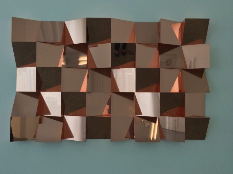 Dall’altra parte della rive gauche, Kamel Mennour dedica uno dei suoi due spazi a una nuova installazione di Petrit Halilaj (Kosterrc, Kossovo, 1986) visitabile fino al 22 novembre. Anche in questo caso sembra di entrare in un sogno dove le sensazioni visive, uditive e olfattive sono potenziate. Un cavallo di argilla con una lunga sciarpa bianca è ritto sulle zampe in una pozza rosa confetto, al centro di un bosco spoglio. Rappresenta la memoria di un avo dell’artista, un notabile di un villaggio rurale che era in grado di dirimere i conflitti. Qualche metro più in là, Gaudel de Stampa ospita Jonathan Binet (Saint Priest, 1984) con le sue tele bianche, sporche e a rovescio, tagliate e vandalizzate in più punti. Il gallery-going potrebbe certamente continuare con tappe in altri spazi e in altre zone… Quest’anno le proposte erano davvero numerose e di ottimo livello. Parigi vs Londra: 1 – 1?