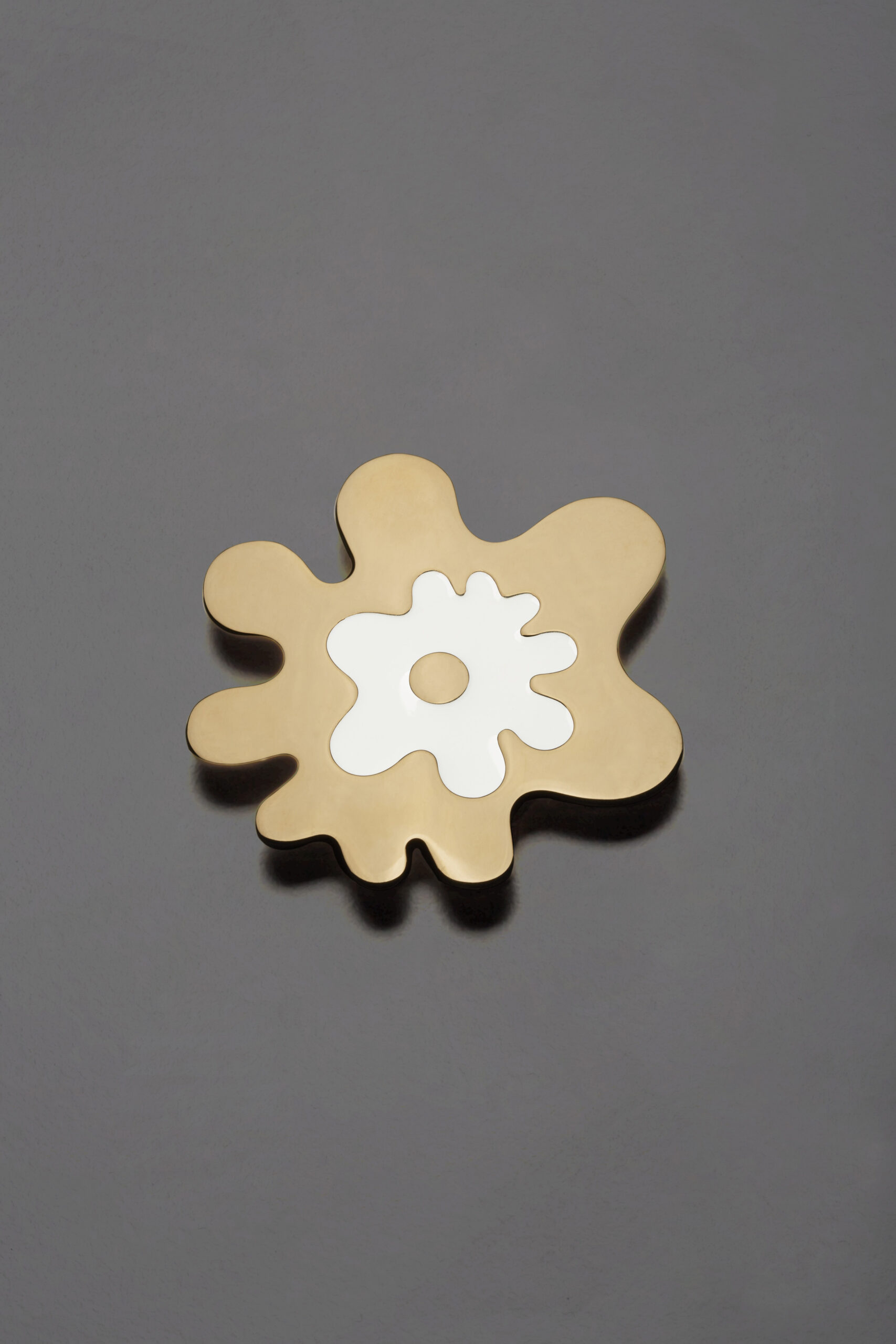 I gioielli, innanzitutto. Tredici monili d’oro, satinati e luminosissimi, realizzati con maestria dalla bottega dei fratelli Rota, orafi vicentini, e ribattezzati Stilemi Enigmatici. Vi si riconosce il tipico alfabeto visivo dell’autore, tradotto in forme essenziali, sintetiche, vagamente organiche, concepite come micro sculture astratte da indossare. Il design è pensato per ottenere un accordo armonico con le curve e i movimenti del corpo, mentre l’aura che li avvolge è tutta in questo riferimento a scritture segrete, segni archetipici, forme mitologiche all’origine del mondo, da cui si dischiudono significati misteriosi. Come piccoli nuclei di energia e di lucentezza, gli amuleti di Mendini evocano esperimenti alchemici ed elementi di antiche formule magiche.