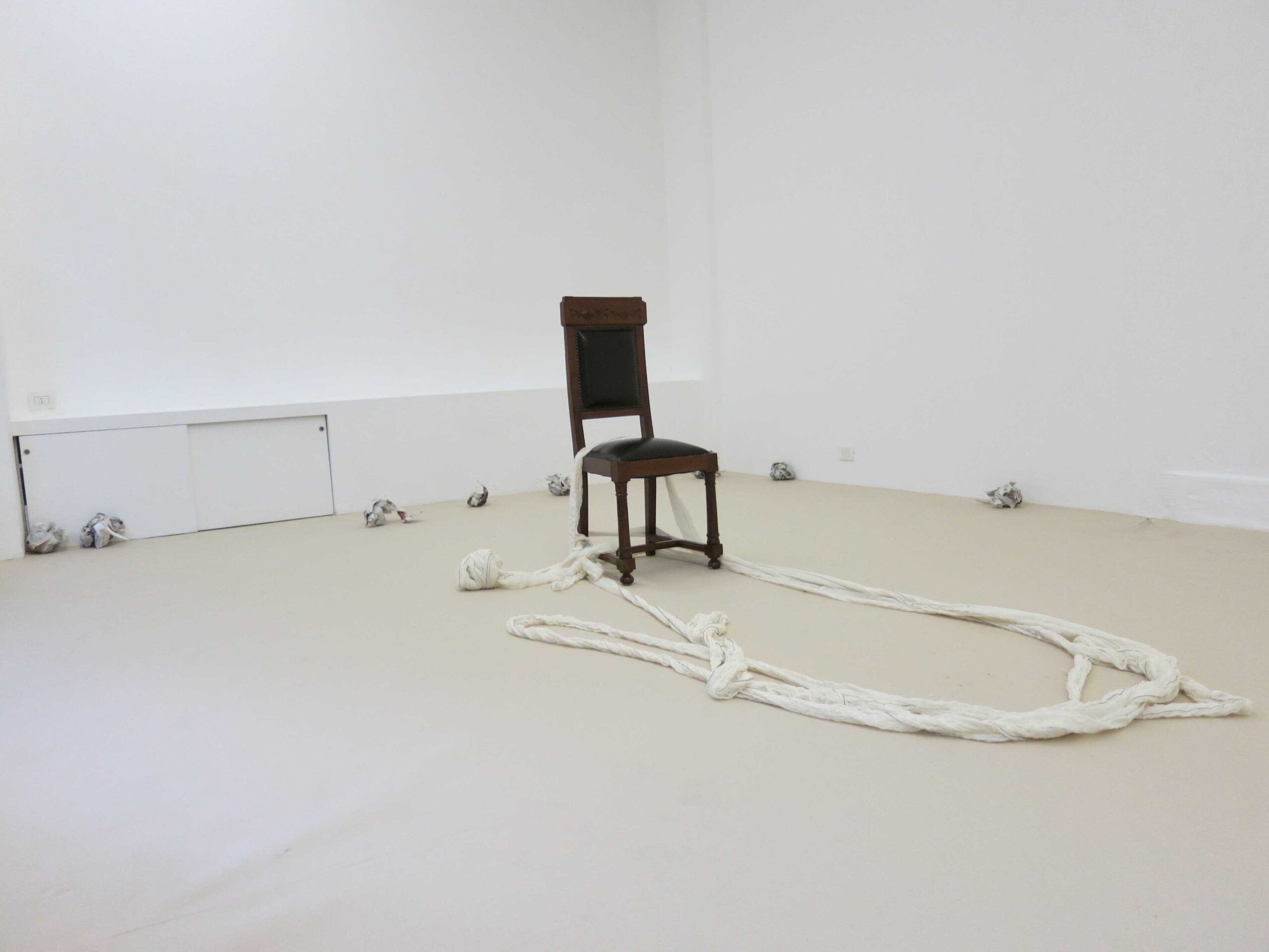 Dopo diversi anni dall’ultima performance messa in scena, l’inaugurazione della personale milanese restituisce ad Anna Maria Maiolino (1942, Scalea) l’occasione per presentare una nuova azione in ATTO, con la partecipazione dell’artista Sandra Lessa. Con una performance dell’ultrasettantenne artista di origini italiane negli spazi di via Stradella 1, per i vent’anni di attività di Raffaella Cortese. La performance nasce e si sviluppa dai legami che intercorrono tra le due donne, una giovane e l’altra più anziana. L’una vestita di scuro e l’altra di chiaro, l’una simbolo di forza conservatrice e l’altra segno di forza devastatrice. Sandra Lessa ha evocato un paesaggio vocale e corporeo, in cui molto è stato lasciato alla più pura improvvisazione. Anna, la donna più anziana, le è stata vicina, amorevole, attenta e sollecita: la sua presenza ha funto metaforicamente da guida spirituale, inducendo la giovane al suo ritorno alla vita.
