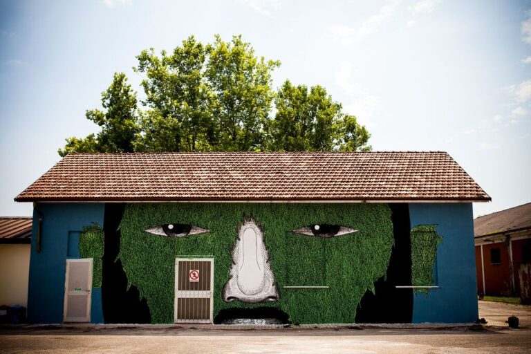 Un omaggio a un territorio nel quale l’uomo ha costruito la propria identità, relazionandosi con un ambiente naturale forte, divenuto riferimento per il quotidiano e spunto di narrazione nel tempo della leggenda. Persino i protagonisti antropomorfi del muro di Kiki Skipi sono alberi con teste a forma di case, che si fanno rami: immagini di accoglienza e di relazione. Gli altri nomi: Andreco, Allegra Corbo, Bastardilla, Andrea D’Ascanio, Mariana Chiesa, 108, Gio Pistone.