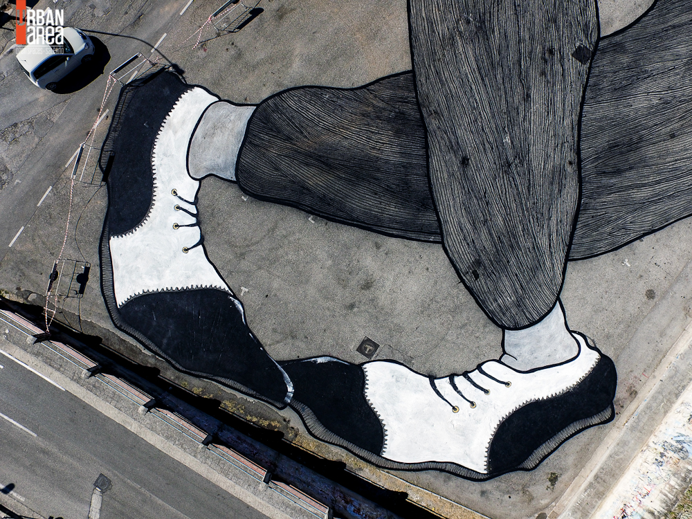 Il catalogo fantastico dei francesi Ella & Pitr, insieme dal 2007, ha un sapore che rimanda dritto al mondo dell’illustrazione, collocandosi nella dimensione urbana così come ci si reinventa in un teatro, nella trama di un racconto, dentro una fiaba per bambini. Tetti, strade, piazze, pareti: i loro wall painting in larga scala abitano i luoghi della collettività, mutandone l’aspetto.