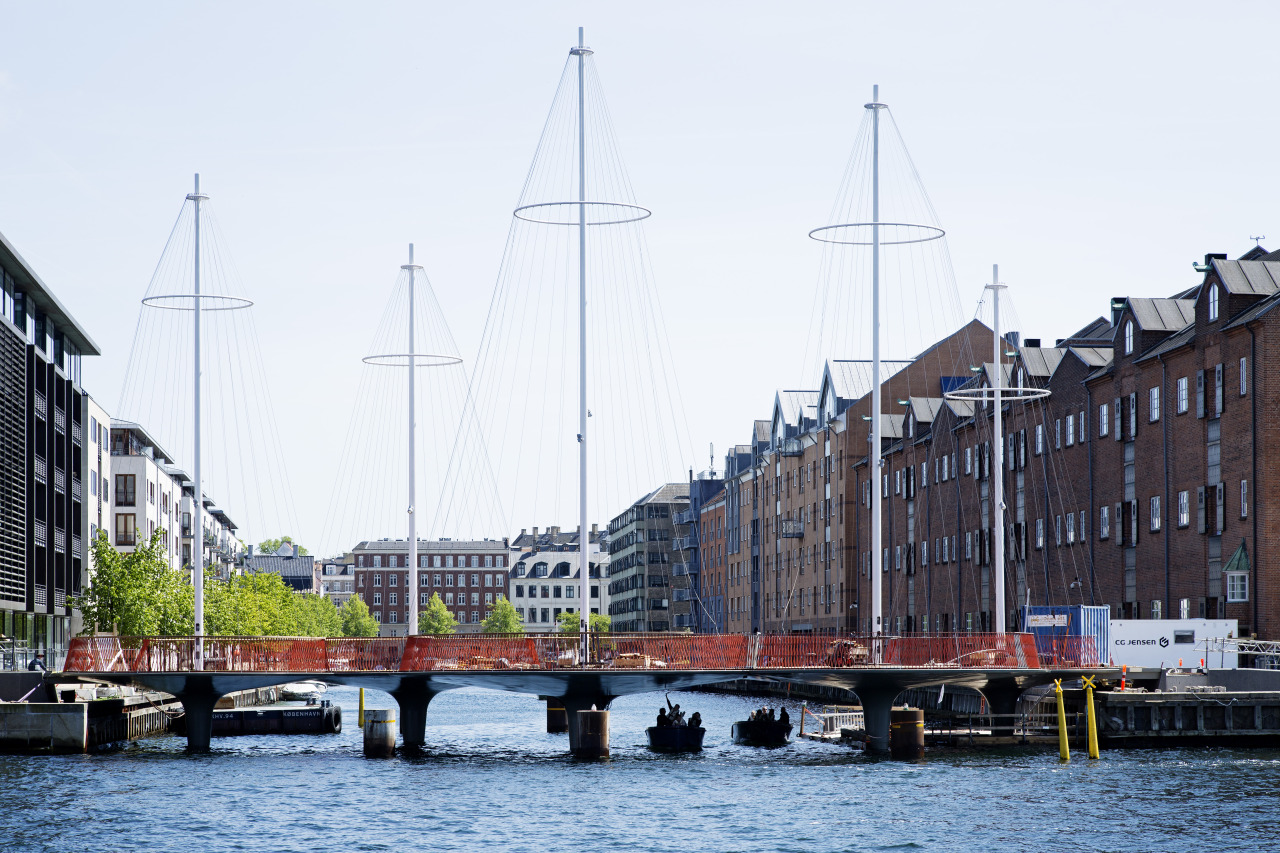 Potrebbe sembrare l’opera di un architetto. Ma dietro al ponticello inaugurato sabato 22 agosto sul canale di Christianshavns, a Copenaghen, c’è l’ingegno di un artista. Uno tra i nomi più influenti a livello internazionale, che negli anni – giocando con i meccanismi della percezione e le esperienze dell’attraversamento – ha sviluppato un’estetica fortemente legata agli spazi, da quelli museali a quelli urbani. Olafur Eliasson, autore di spettacolari installazioni site specific piazzate in giro per il mondo, ha dedicato uno dei suoi interventi oversize alla capitale della Danimarca, sua città natale. Si chiama “Cirkelbroen” (Ponte circolare) ed è una struttura ad anelli che completa il progetto di accessibilità del perimetro del porto: l’ultimo tratto da completare, affinché pedoni e ciclisti potessero muoversi agevolmente in quest’area.
