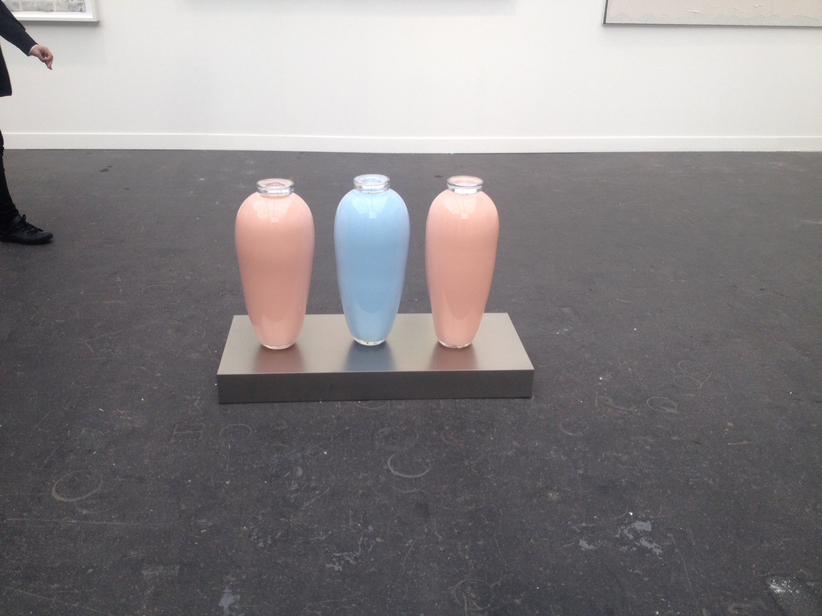 Grandi nomi anche per Tornabuoni: insieme ai consueti Fontana, Bonalumi, Castellani e Burri troviamo anche artisti più contemporanei come Francesca Pasquali e Pablo Atchugarry. Opere notevoli da Massimo Minini: superstar come Anish Kapoor, ma anche Landon Metz, Enzo Mari in anteprima (la sua mostra inaugura il prossimo 21 novembre) e Leon Golub. Da Continua artisti conosciutissimi e opere storiche (Kounellis, ma anche Pistoletto, qui con un’opera che vuole essere il punto d’arrivo della sua ricerca sullo specchio). Interessanti i lavori di Pascale Marthine Tayou, a prima lettura divertenti e giocosi, ma dal titolo amaro, Lampedusa, e il marmo rosso sagomato di Anish Kapoor. Svoltato l’angolo, ecco lo stand di Alfonso Artiaco: calamita l’attenzione dei visitatori l’opera Barboncino bianco, barboncino nerodi Tursic&Mille, che condivide lo stand con opere, tra altri, di Giulio Paolini, Niele Toroni (subito ben venduto) e Sol Lewitt.