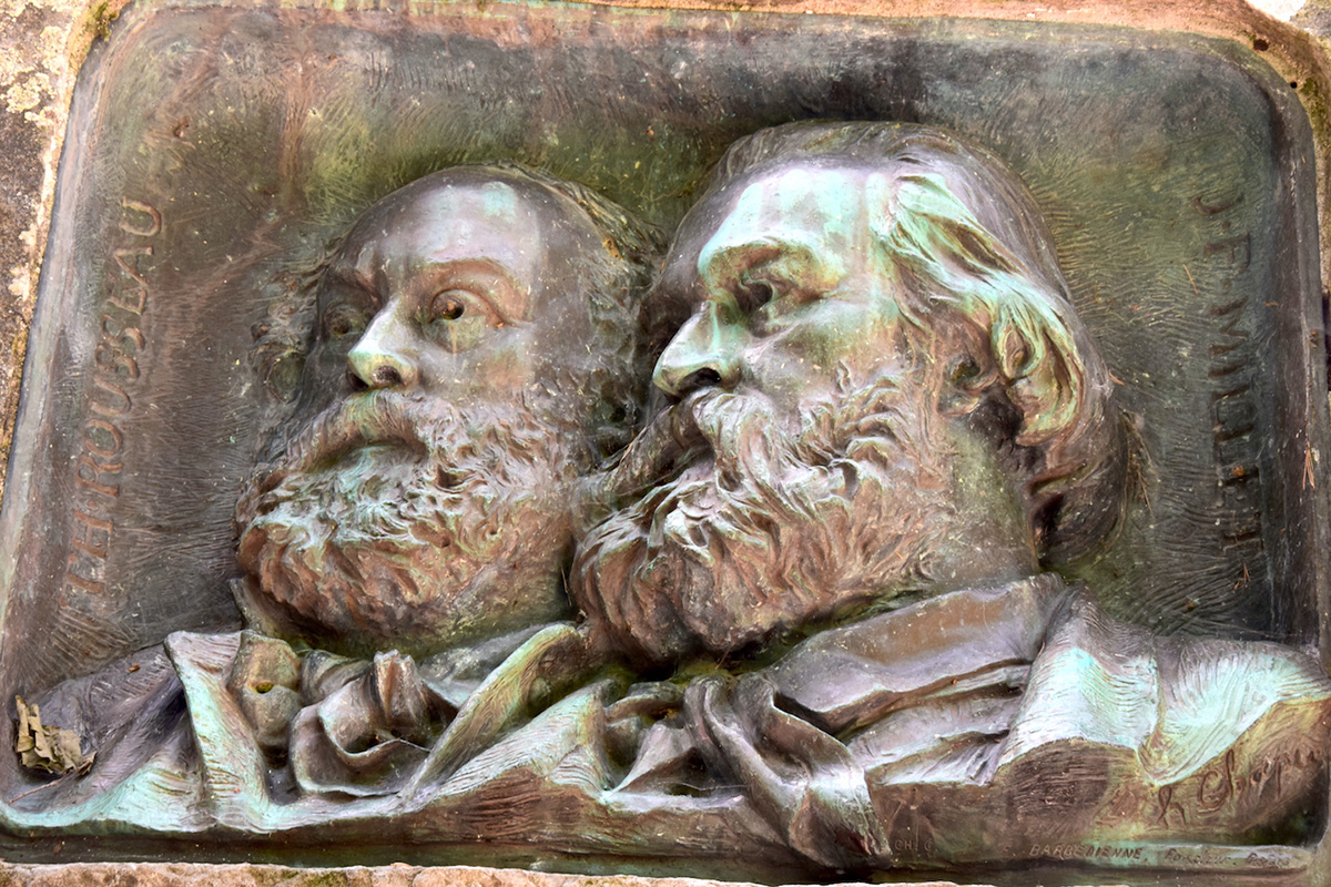 La sosta davanti alla lastra in bronzo scolpita da Henri Chapu nel 1884 con i volti di Théodore Rousseau e Jean-François Millet apposta su un masso in una radura della foresta ci riporta alla storia dell’arte. Un’iscrizione commemorativa del 1953 ricorda i cento anni da quando su iniziativa di Théodore Rousseau, il capofila di quella schiera di artisti che dipingevano sur le motif, fu istituita la Reserve artistique de la Forêt de Fontainebleau, primo esempio di azione a tutela dell’ambiente naturale. Non ancora un sentimento ecologico come lo intendiamo noi contemporanei, ma piuttosto una pulsione artistica per evitare il disboscamento della zona; indicativa di quella sensibilità romantica e del sincero legame con la natura che animava i Barbisonniers. Oggi la Foresta di Fontainebleau è riconosciuta come Riserva naturale della Biosfera dall’UNESCO.