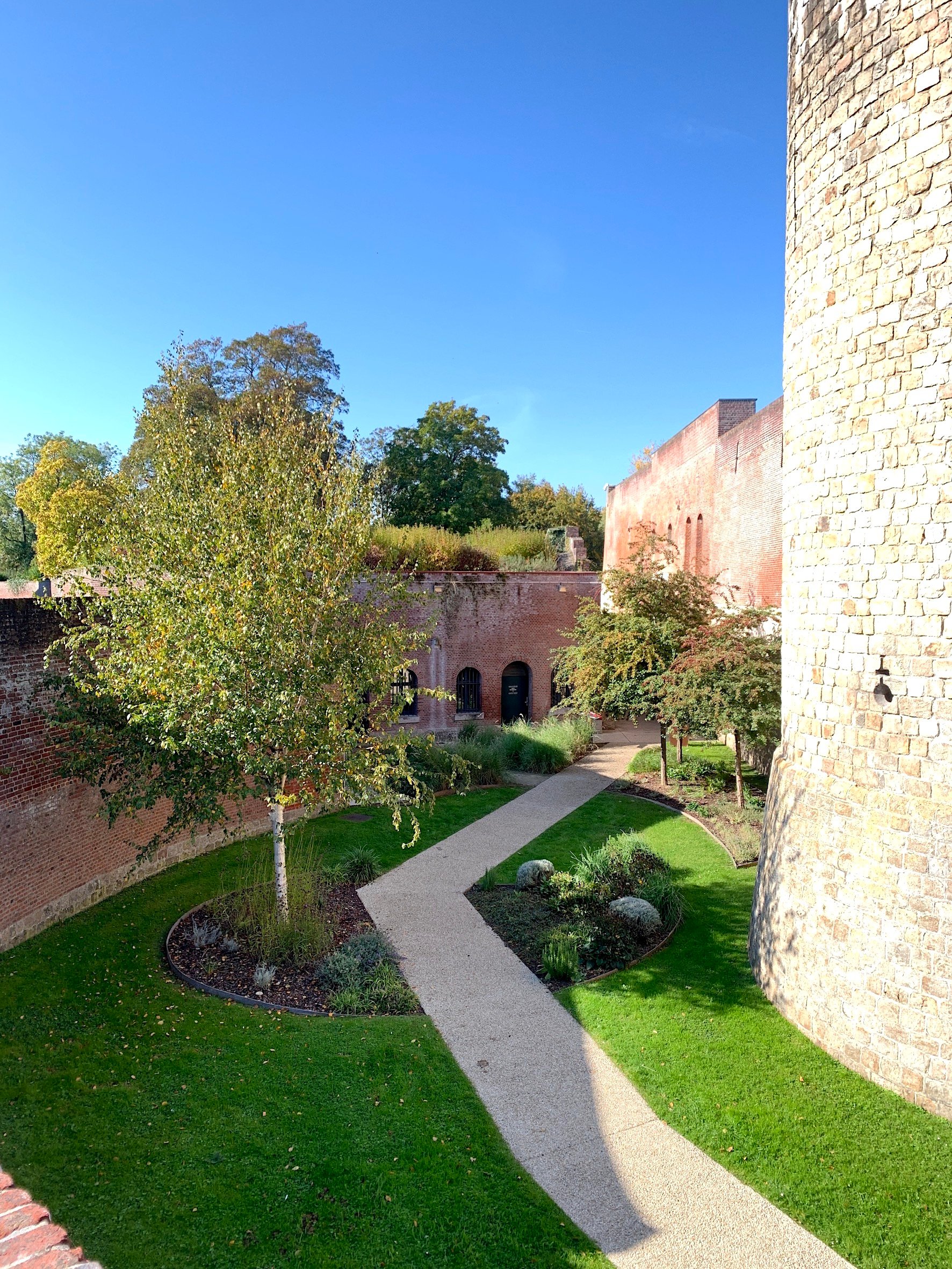La realizzazione dei Jardins de la Paix si sviluppa in mezzo a paesaggi agricoli ampi e ben curati. La regione Hauts-de-France si distingue per l’estensione di terreni agricoli, in particolare per la coltivazione della patata dolce e della barbabietola da zucchero, e per la tradizione degli orti urbani. Questo paesaggio rimanda ai dipinti di grandi autori francesi del 18° secolo, come Claude Lorrain (Chamagne, 1600 – Roma, 1682). Inoltre, in queste terre viene storicamente coltivata la pianta speciale Isatis tinctoria, erba tintoria da cui si estrae un pigmento per creare il colore blu, usata dai pittori di tutti i tempi.